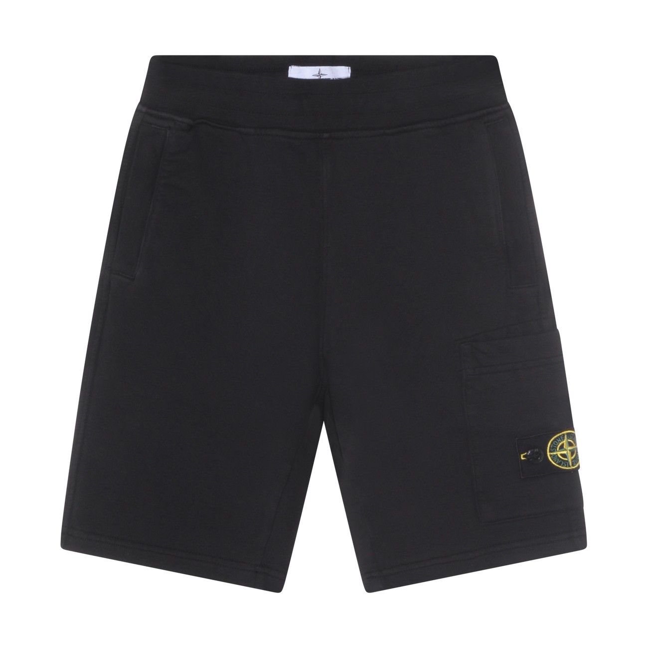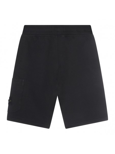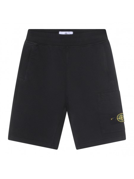 Black cotton shorts from Stone Island featuring elasticizated waist, logo patch and regular vestibility.