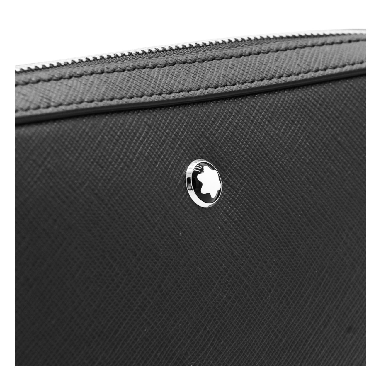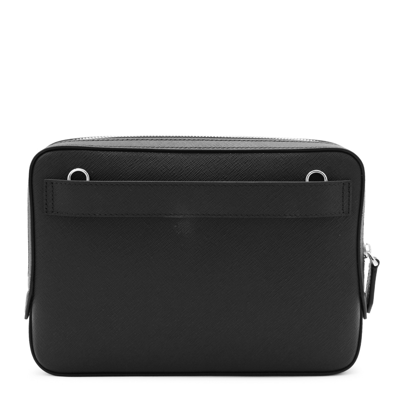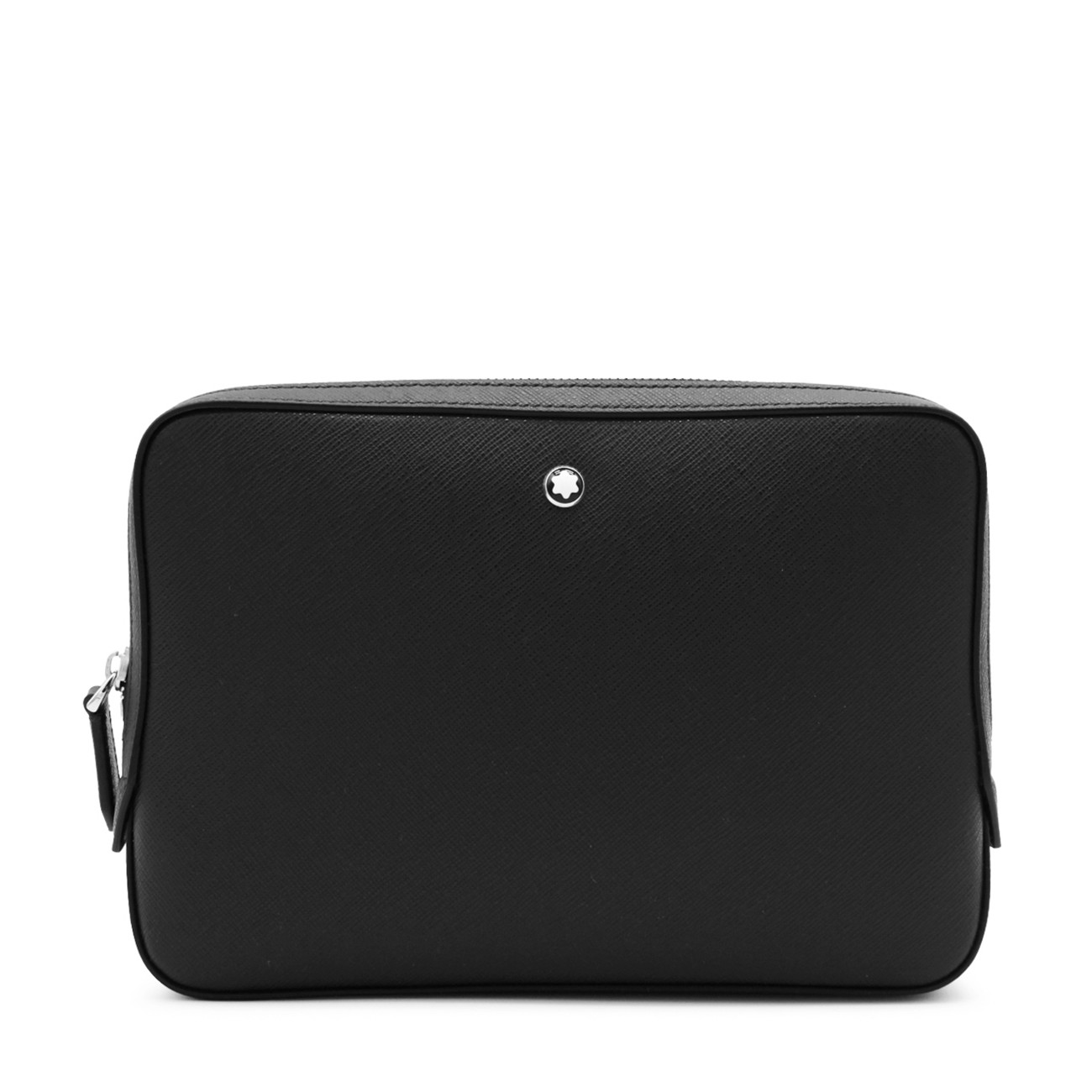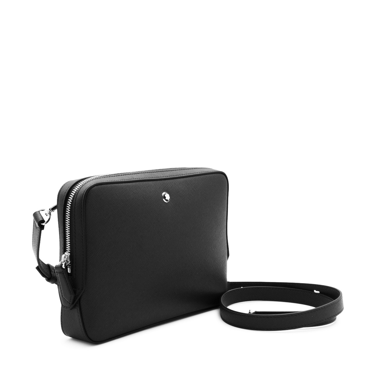 Black leather pouch from Montblanc featuring adjustable and removable shoulder strap, logo, zip fastening and main compartment.