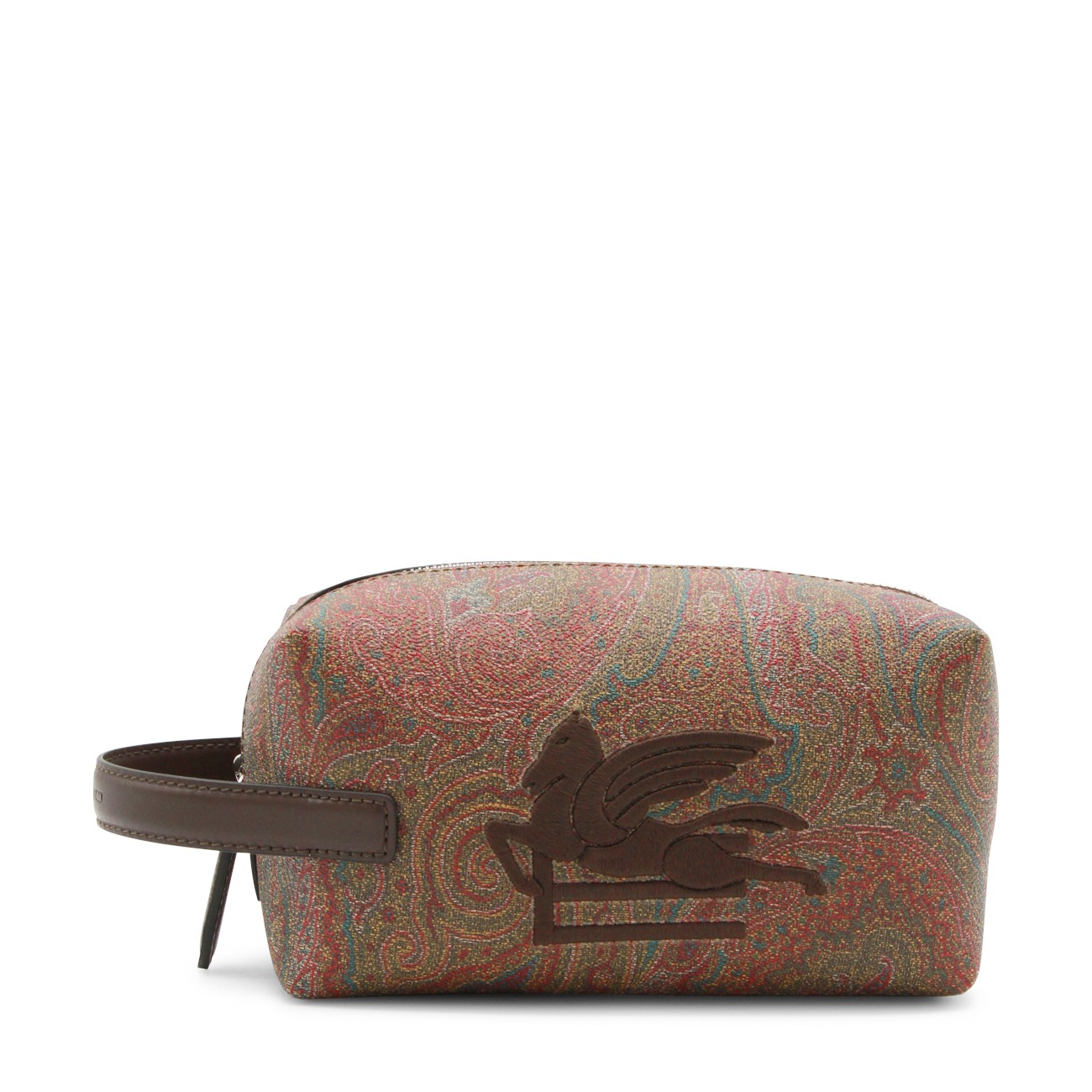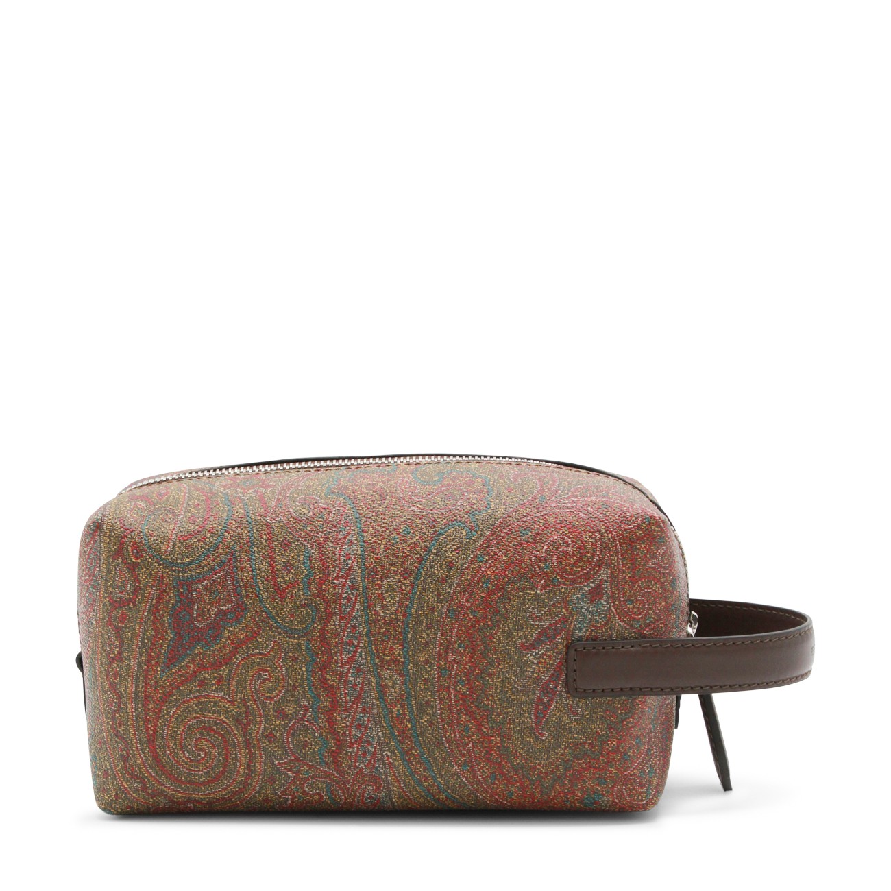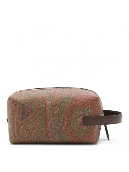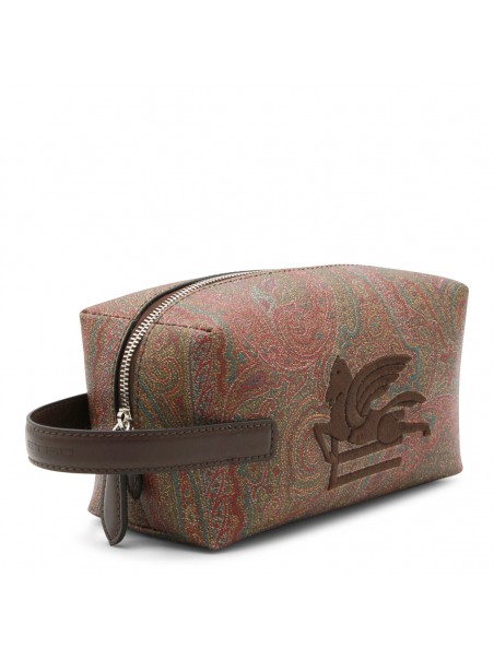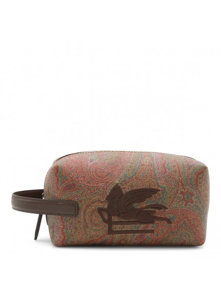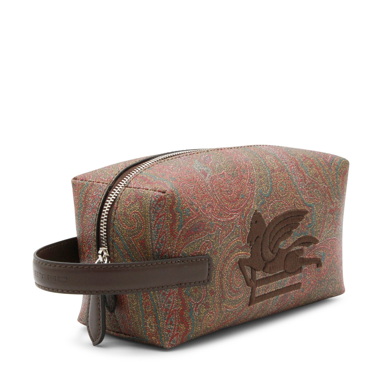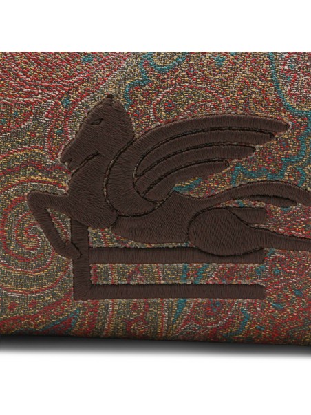 Brown pouche from Etro featuring lateral handle, upper zip fastening, frontal logo and all over pattern.