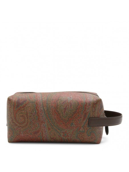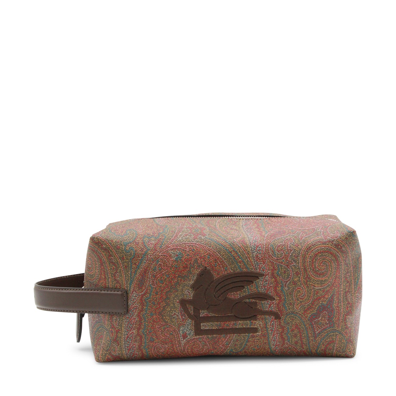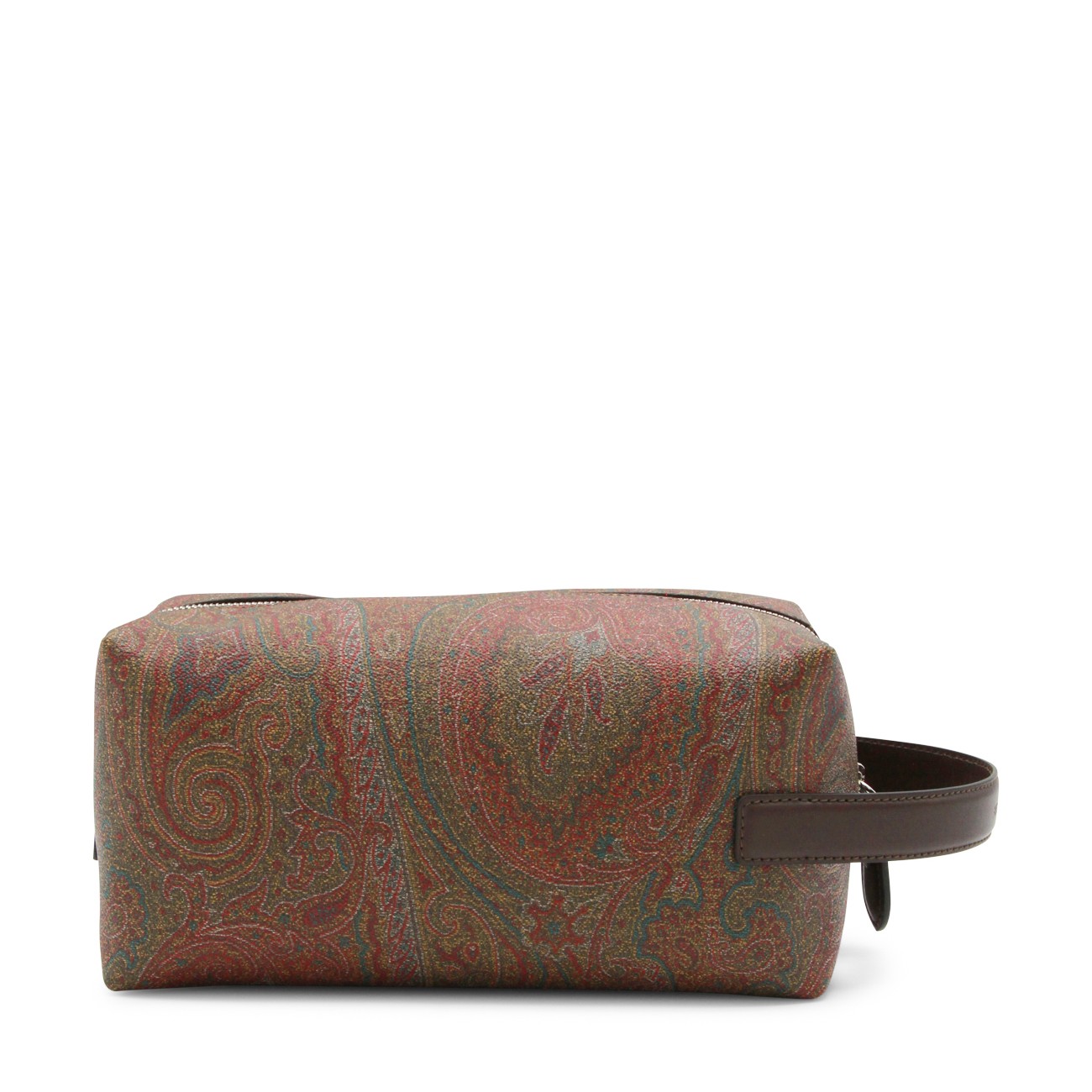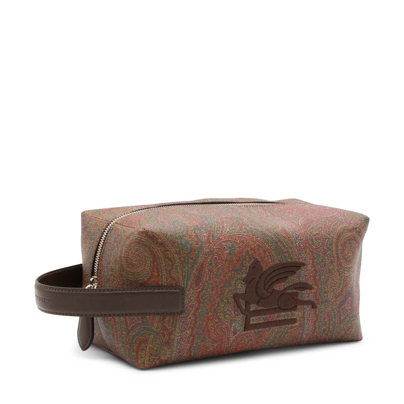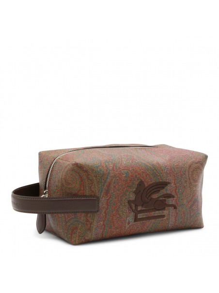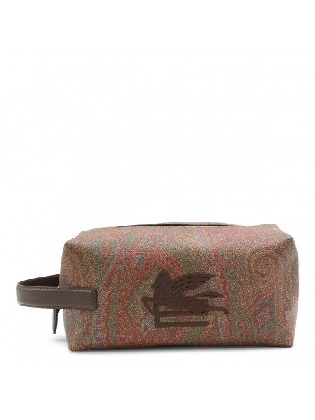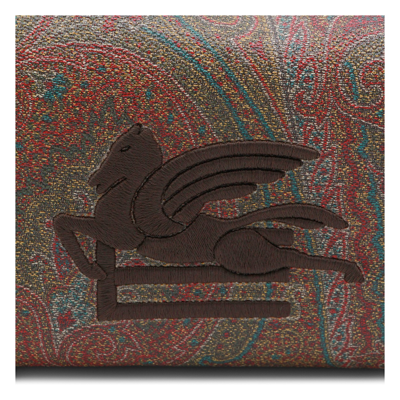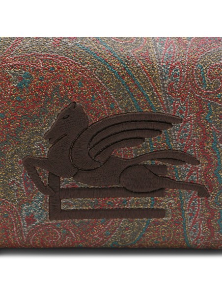 Brown pouche from Etro featuring lateral handle, upper zip fastening, frontal logo and all over pattern.