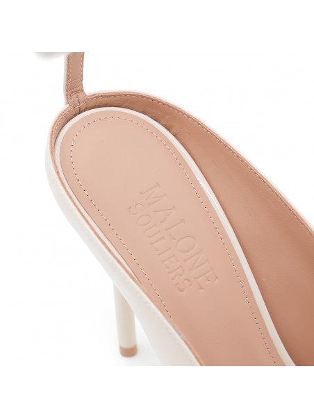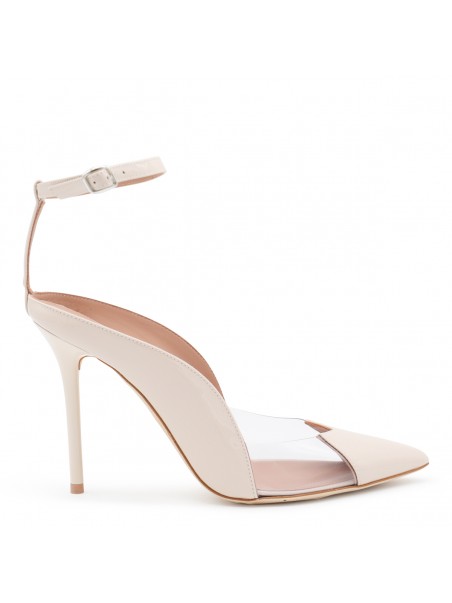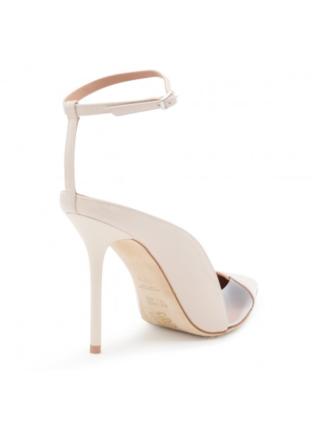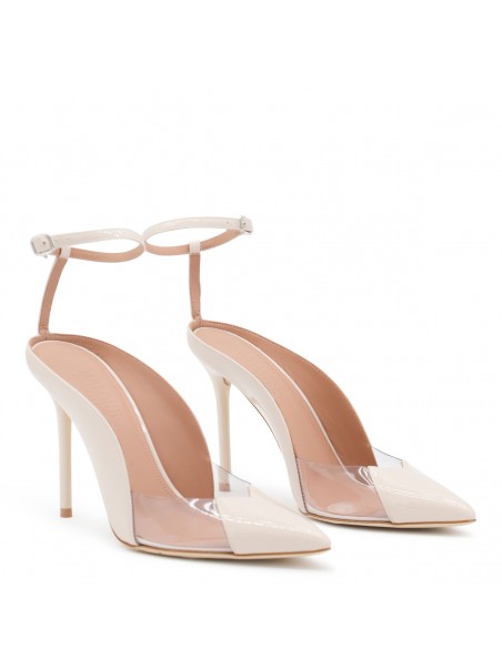 Cream leather pumps from Malone Souliers featuring pointed toe, stiletto heel, buckle fastening and trasparence.