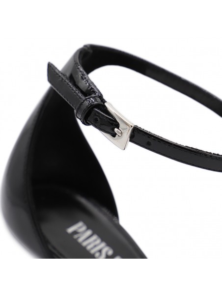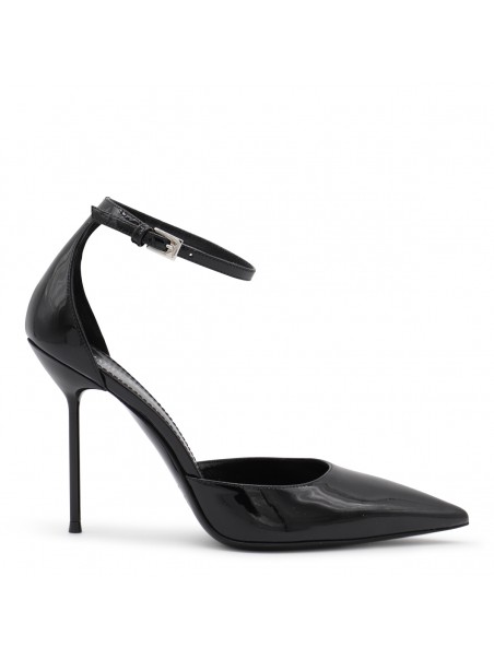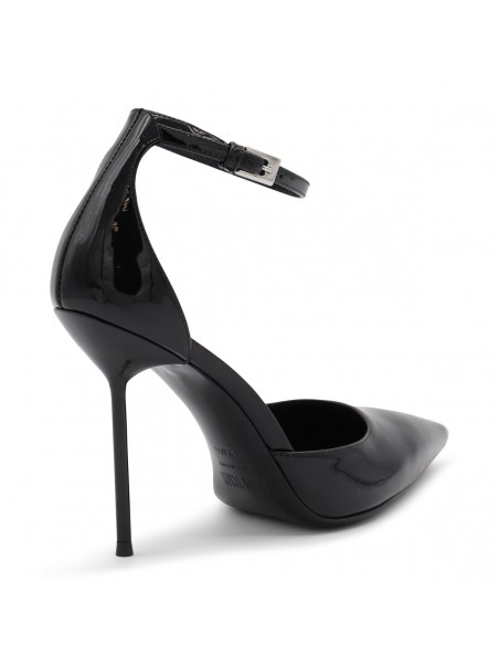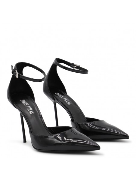Black leather Lidia pumps from Paris Texas featuring pointed toe, high stiletto heel and ankle adjustable strap.