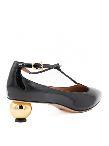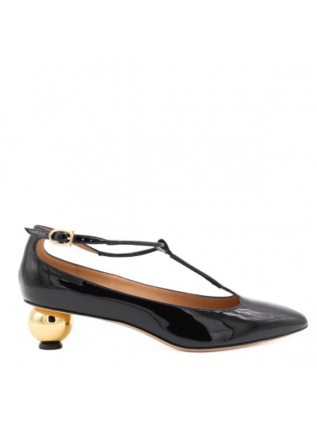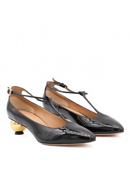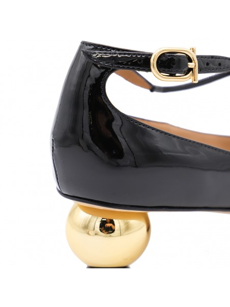Black Tania pumps from Ferragamo featuring pointed toe, gold tone hardware, heel with detail, buckle fastening and leather sole.