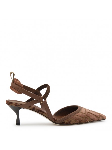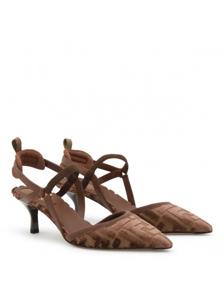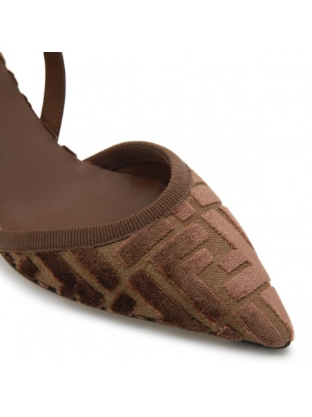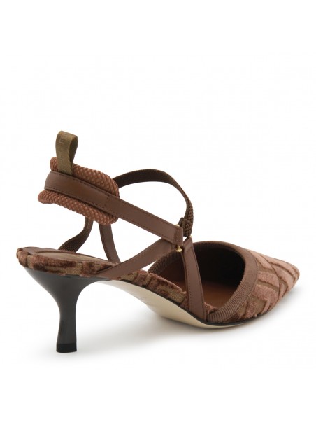 Brown Lite FF Colobrslignbacks from Fendi featuring poitend toe, kitten heel and all over tone on one FF motif.