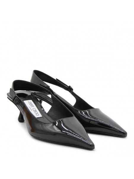 Black leather lucid pumps from Jimmy Choo featuting pointed toe, heel, leather sole, lateral buckle fastening and opening back.