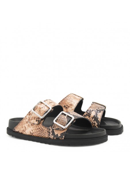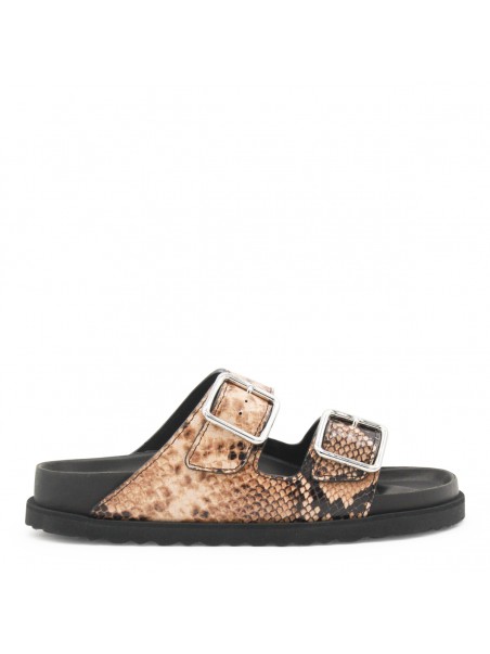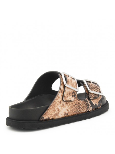BROWN AND BLACK LEATHER ARIZONA SNAKE SANDALS