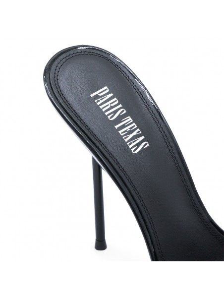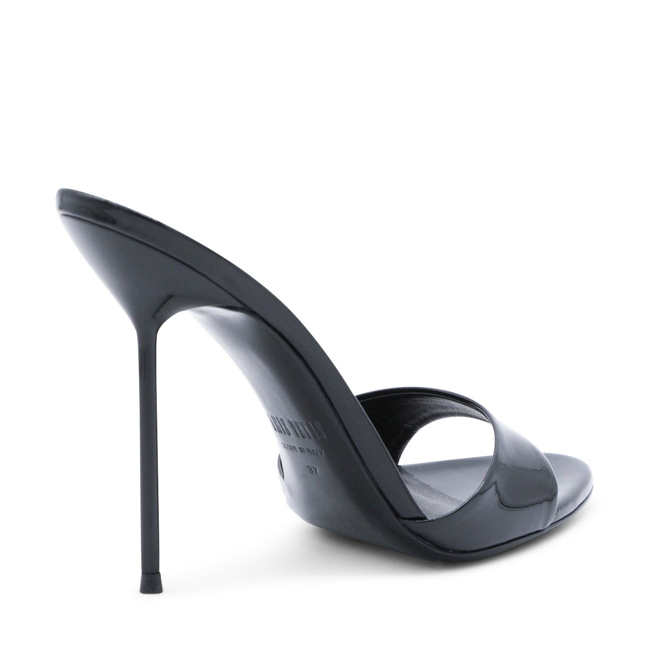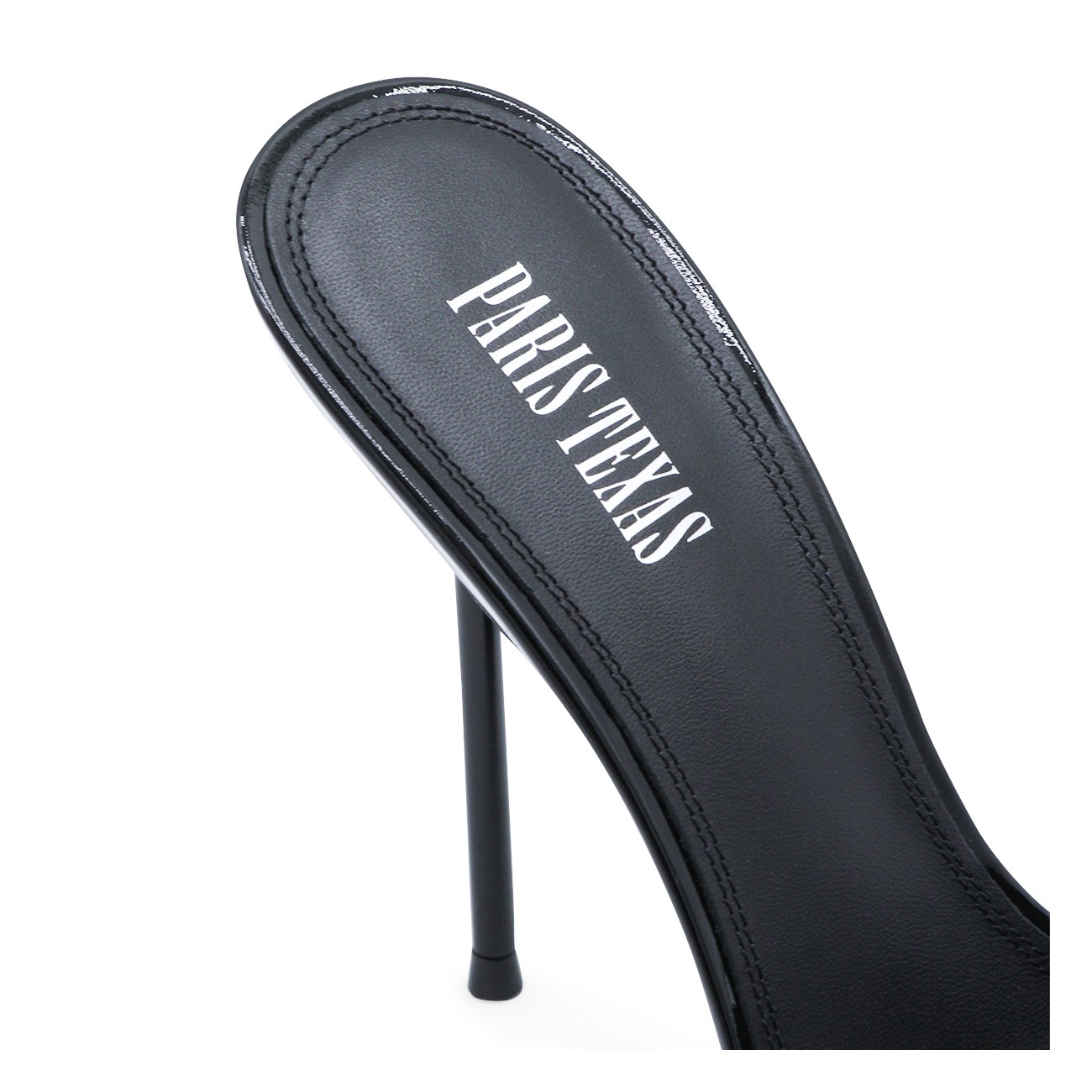 Black leather Lidia Mule 105 sandals from Paris Texas featuring open pointed toe, slip-on style, stiletto heel and leather insole.