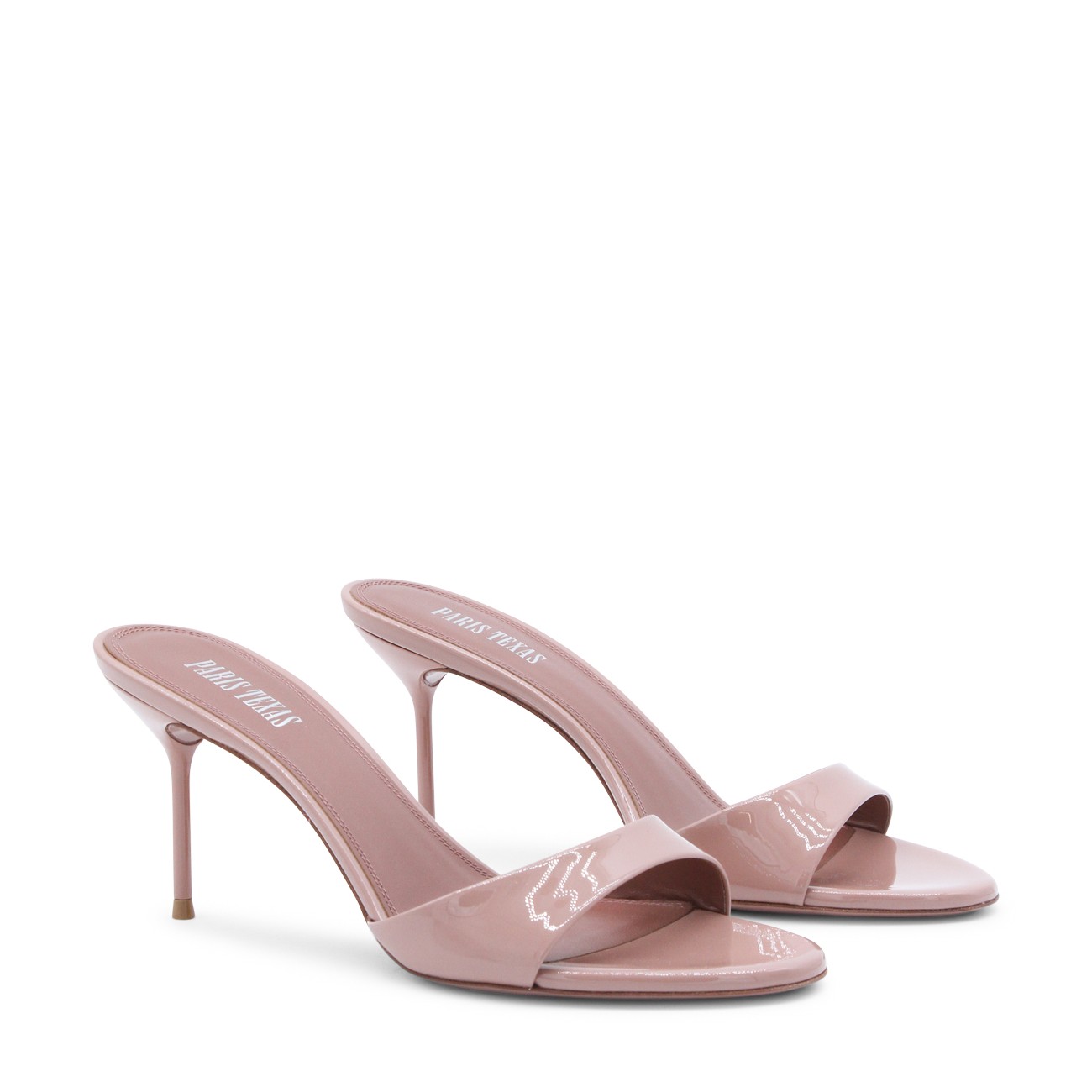 Pink leather Lidia mule 70 from Paris Texas featuring pointed open toe, slip-on style and mid-height slender heel.