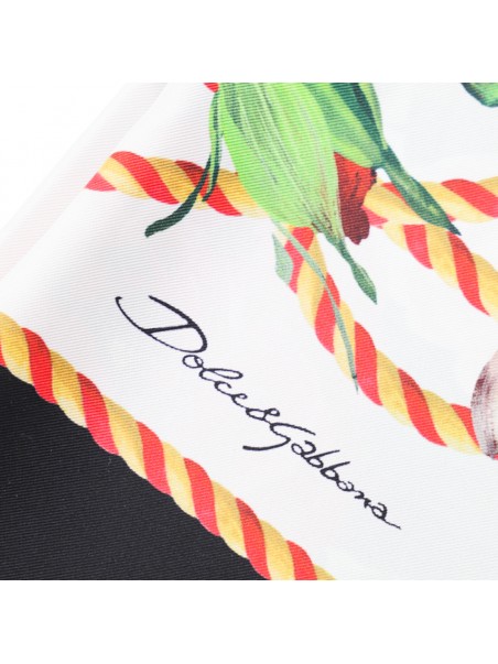 White and multicolor silk scarf from Dolce&Gabbana featuring all-over graphic print, finished edge, square shape and lightweight construction.