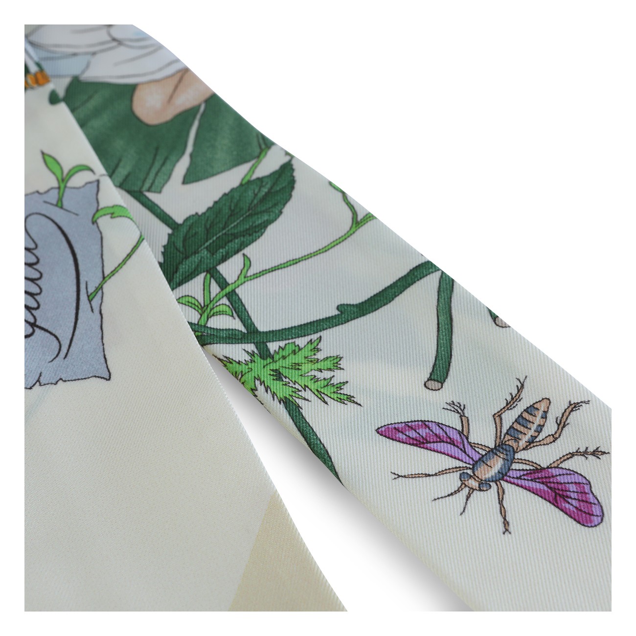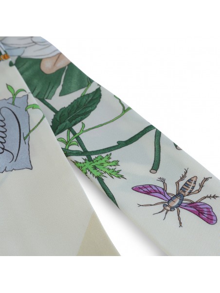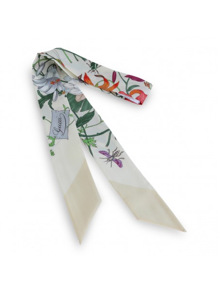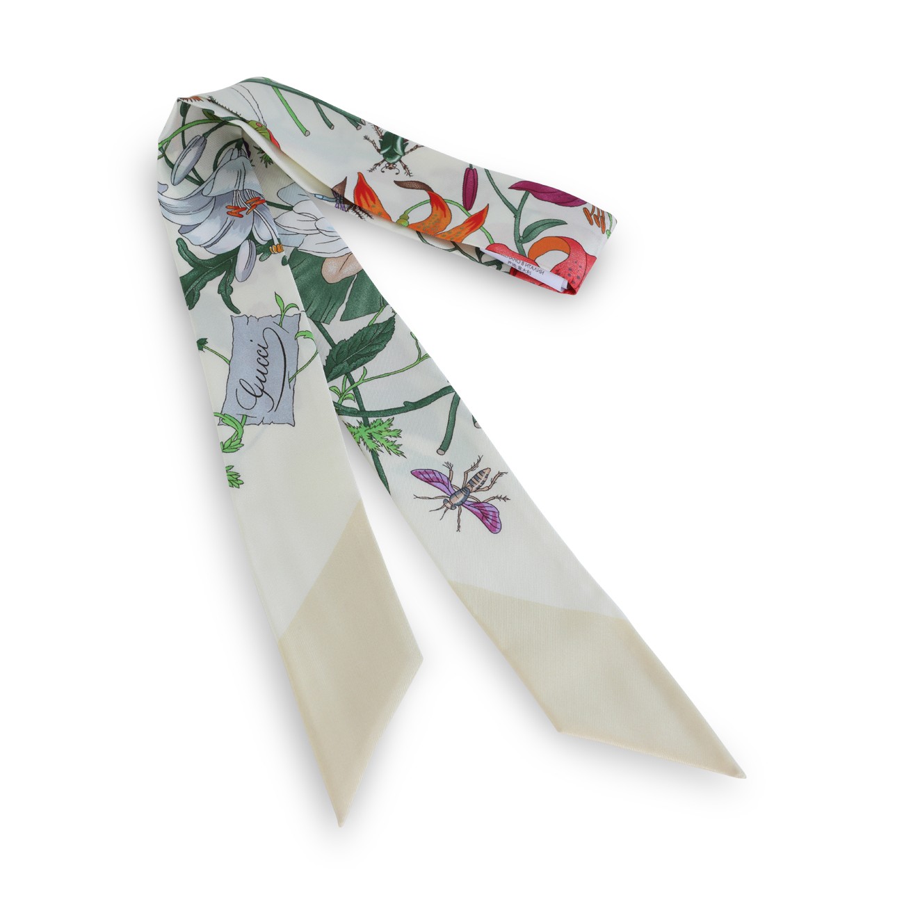 Ivory silk scarf from Gucci featuring all over stamp and logo stamp.