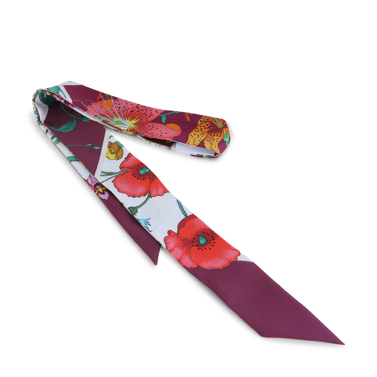 Mauve pink silk scarf from Gucci featuring all over stamp and logo stamp.