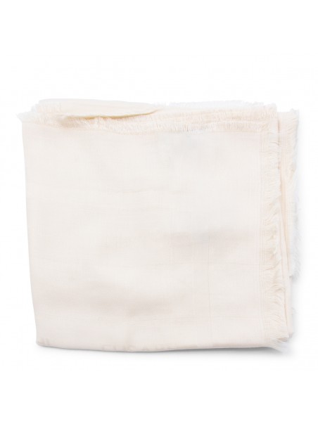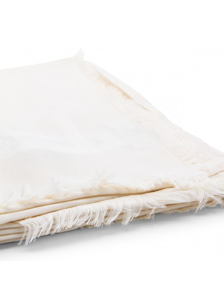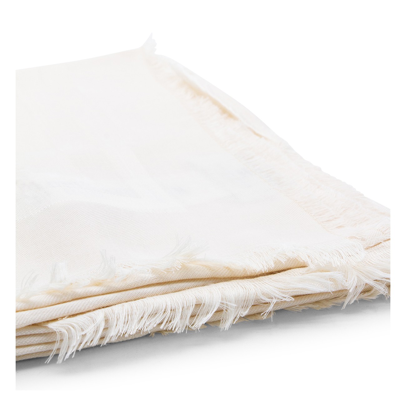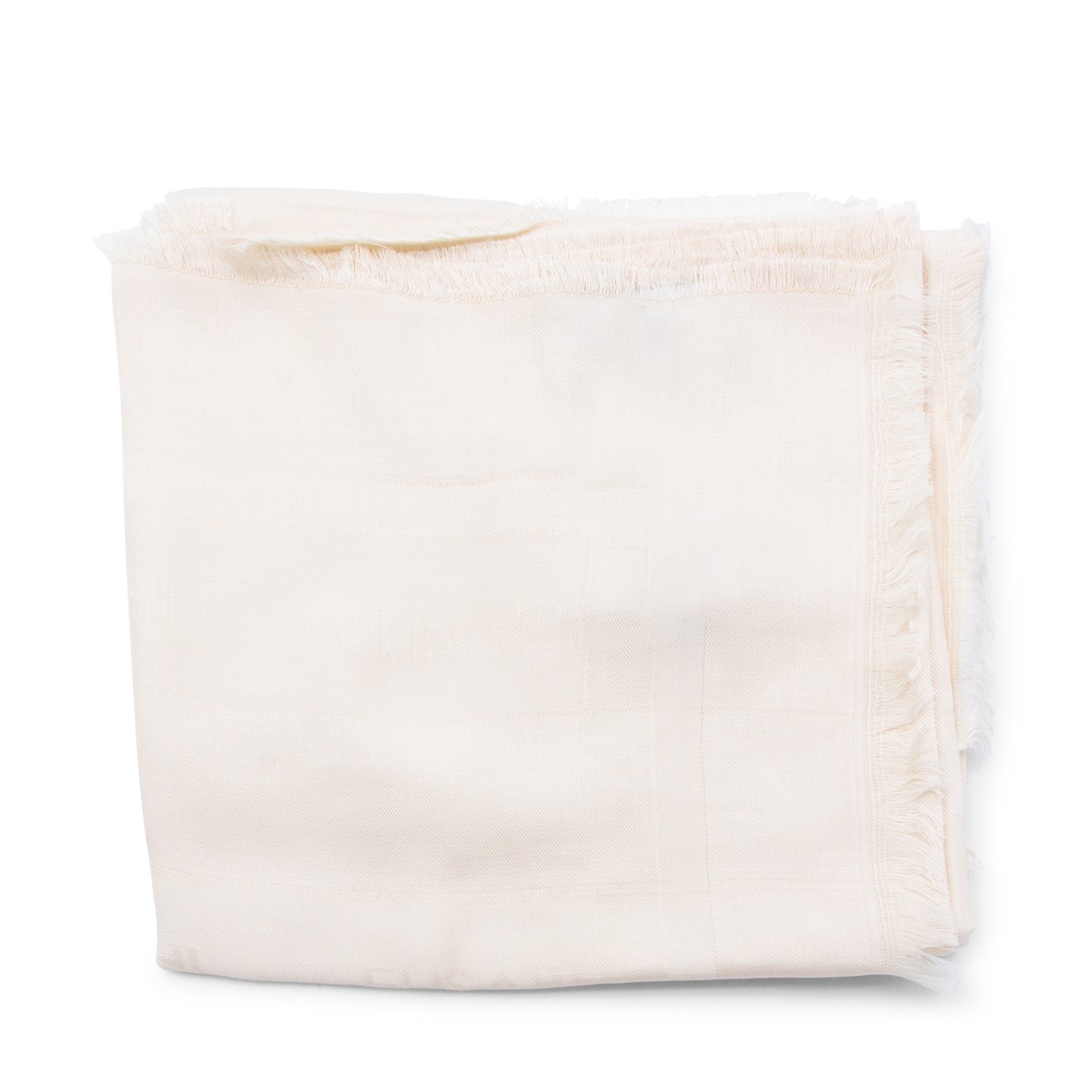White scarves from Elisabetta Franchi featuring square shape, fringed hem and logo patch.