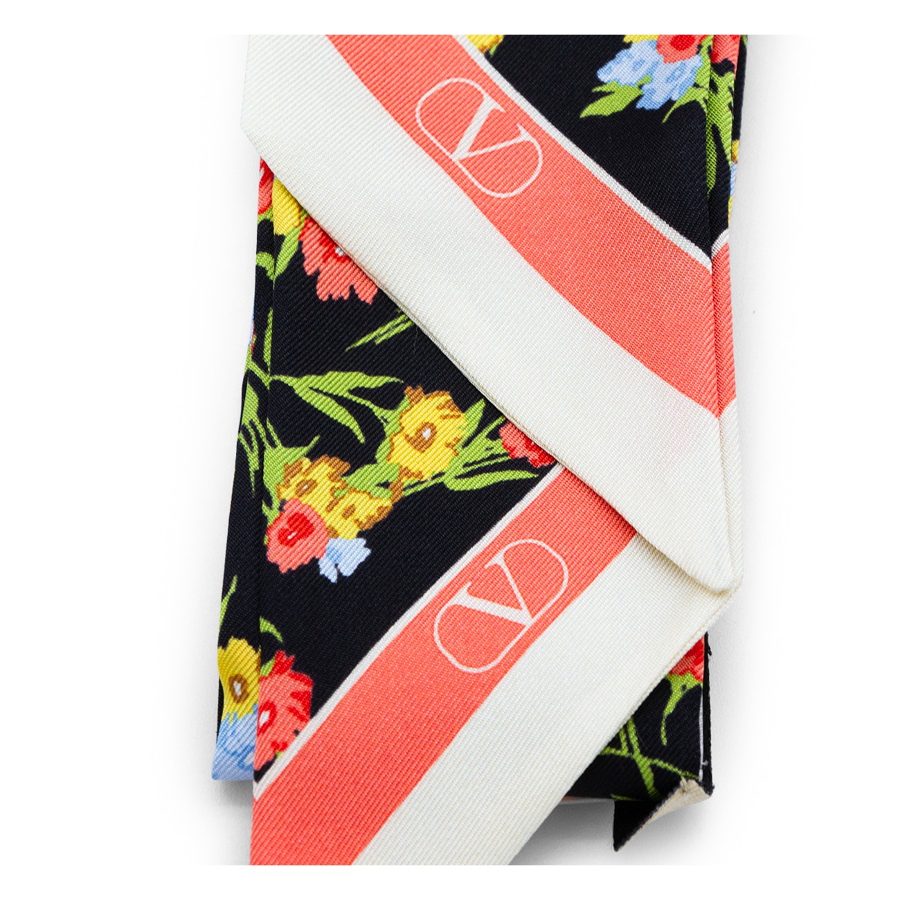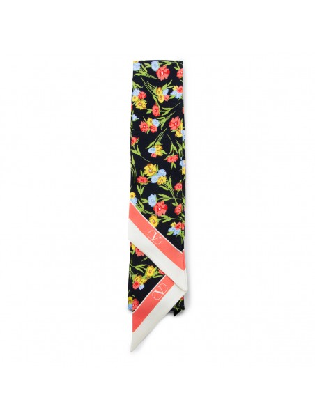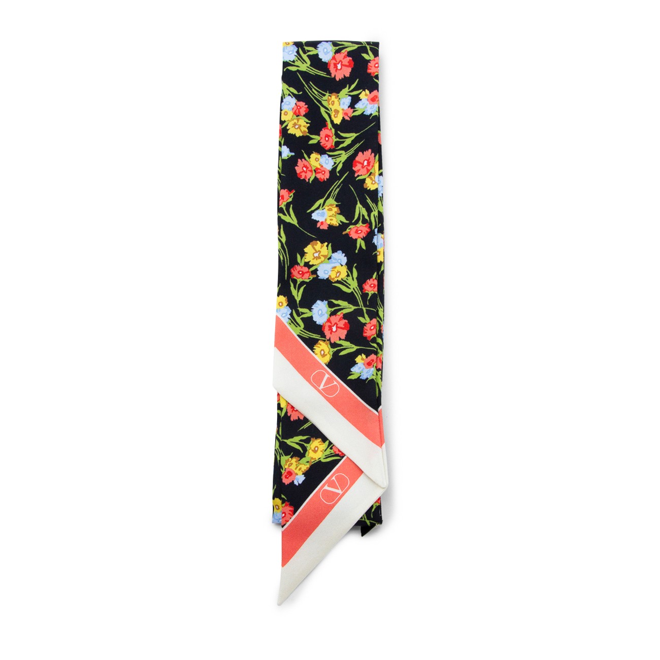 Black silk scarf from Valentino Garavani featuring all over stamp and logo.