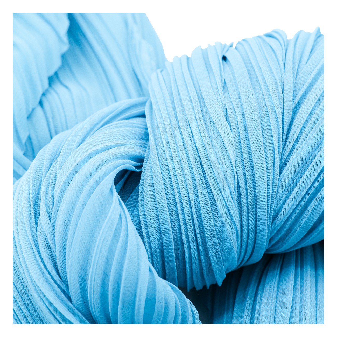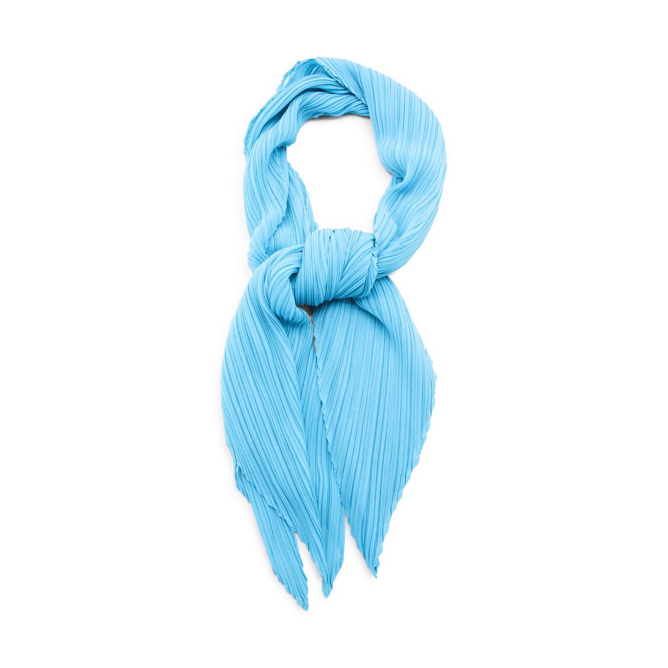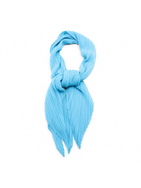 Blue scarves from Pleats Please Issey Miyake featuring all over plisse and trangle shape.