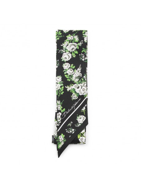 Black and green scarves from Dolce & Gabbana featuring all over leopard pattern and logo.