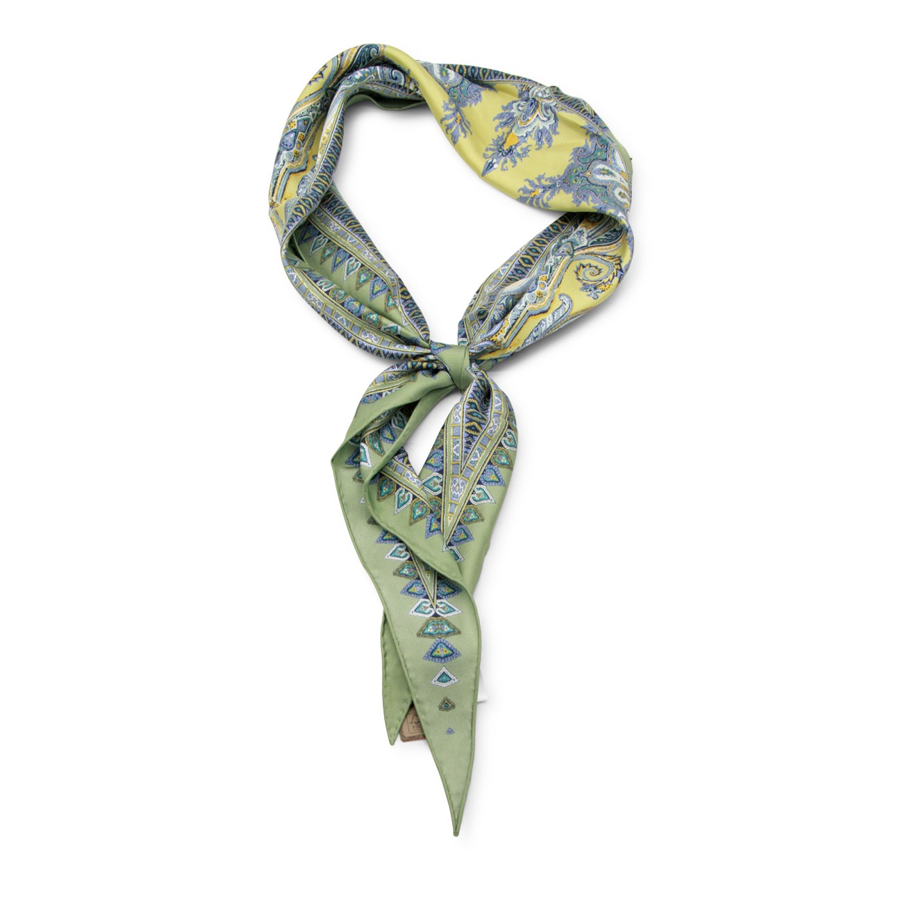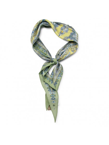 Multicolor silk scarf from Etro featuring contrasting border, all-over print and logo on the corner.