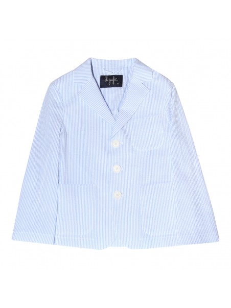 Light blue cotton blazer from Il Gufo featuring single breasted, button closure, front pockets and long sleeves.