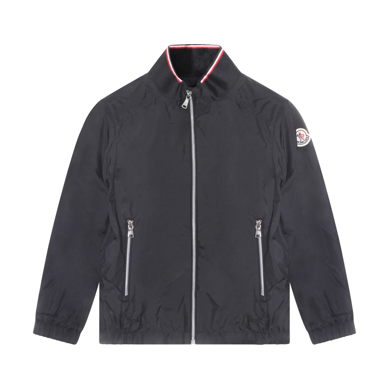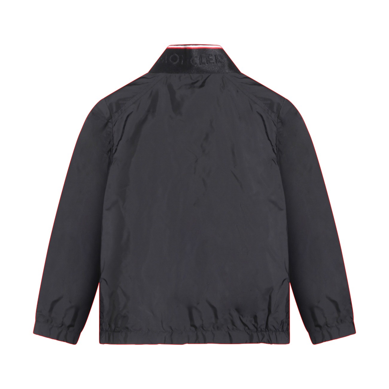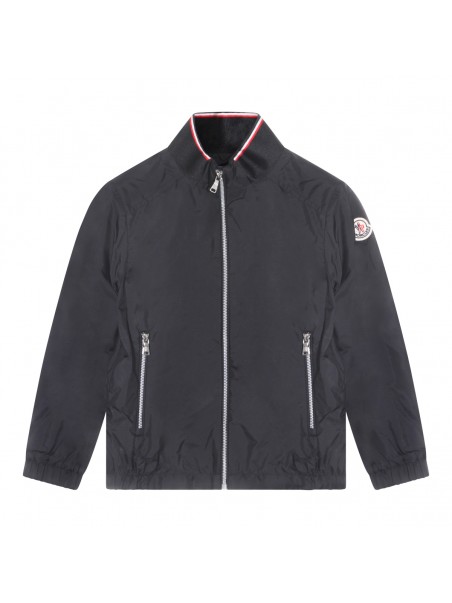 Black casual jacket from Moncler featuring long sleeves, zip fastening at front, sleeve logo patch, frontal pockets and regular vestibility.