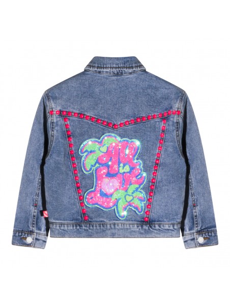 Blue denim cotton jacket from Billieblush featuring long sleeves, frontal fastening, pockets and regular vestibility.