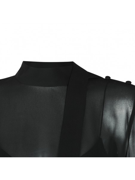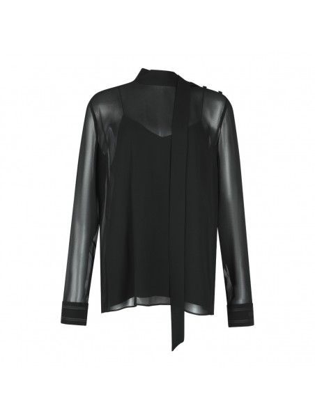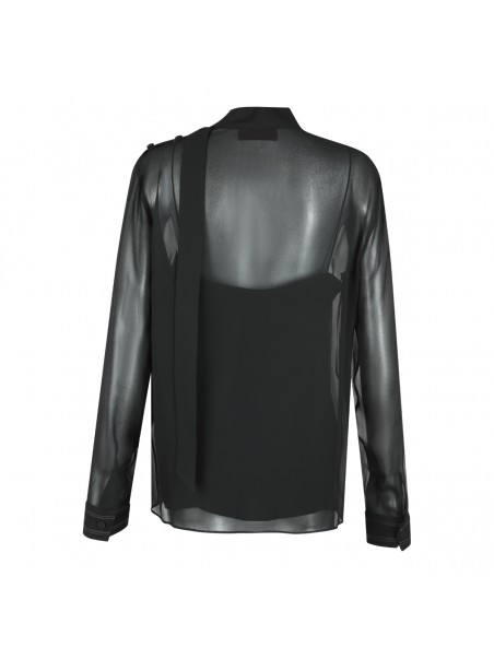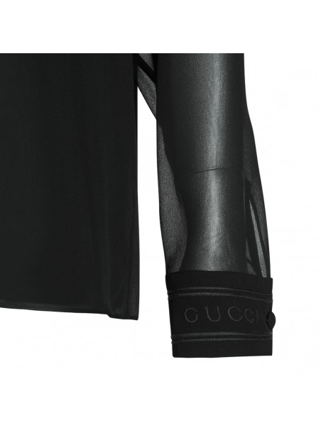 Black silk shirt from Gucci featuring long sleeves, trasparence and laces.