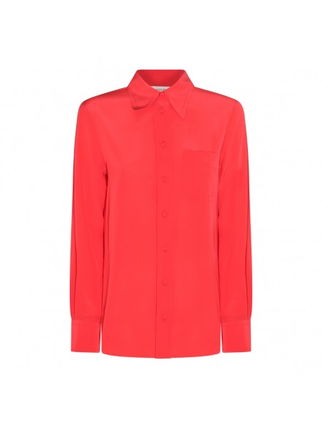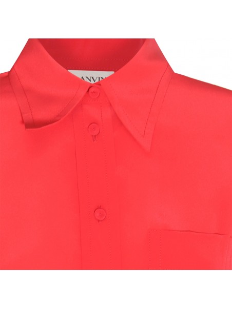 Watermelon silk shirt from Lanvin featuring pointed flat collar, chest patch pocket, front button fastening, long sleeves, buttoned cuffs and straight hem.