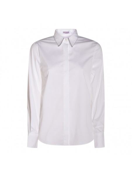 White cotton shirt from Brunello Cucinelli featuring shirt collar, long sleeves, frontal button fastening and regular vestibility.