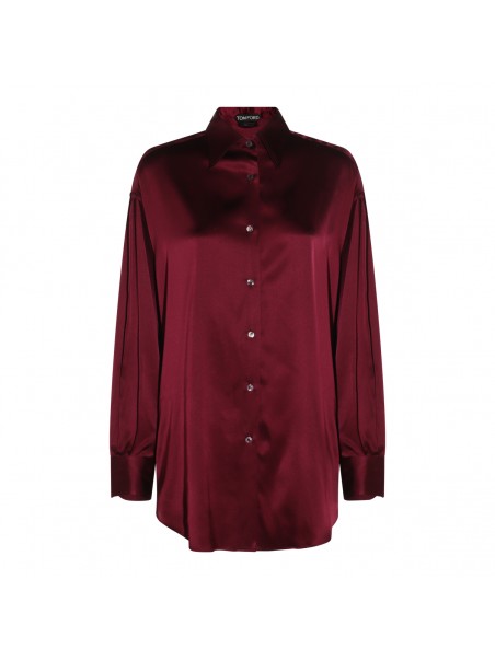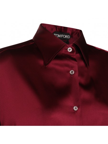 Dark purple silk fit shirt from Tom Ford featuring shirt collar, long sleeves, frontal buttons fastening, buttoned cuffs and regular vestibility.
