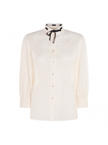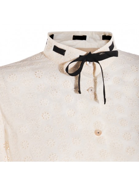 White cotton shirt from Valentino featuring high collar, buttons fastening, long sleeves and regular vestibility.