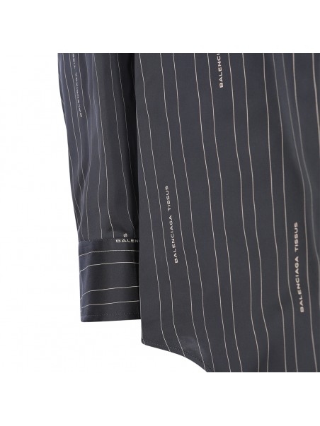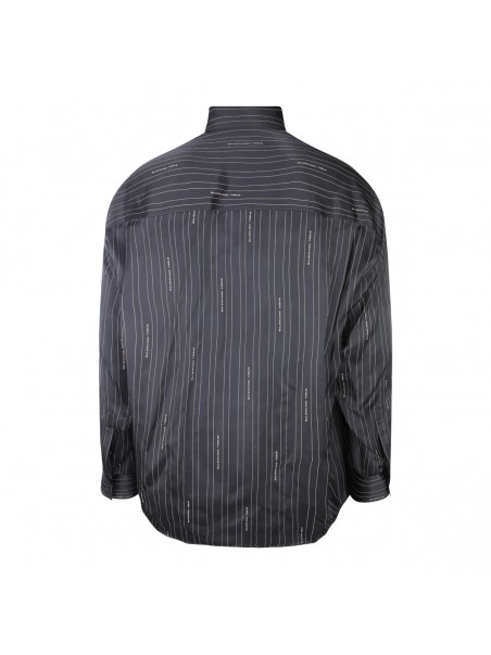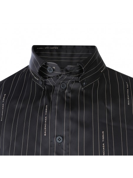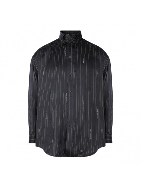 Black viscose shirt from Balenciaga featuring high collar, long sleeves, round hem, soft vestibility and logo details.