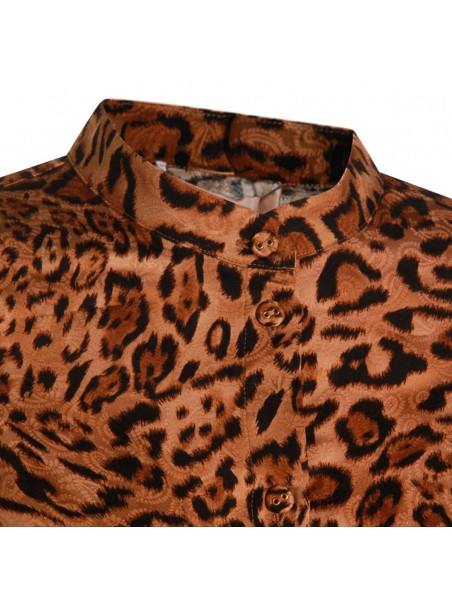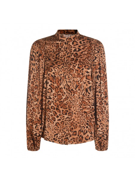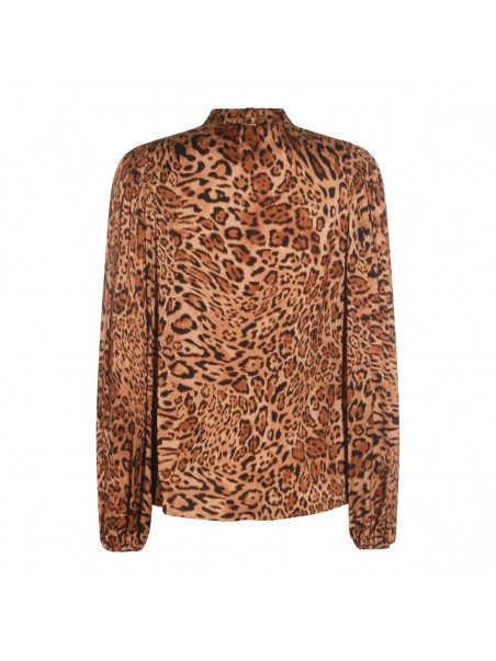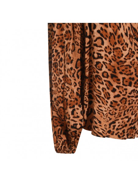 Brown viscose shirt from Twinset featuring, long sleeves, animal print and soft vestibility.