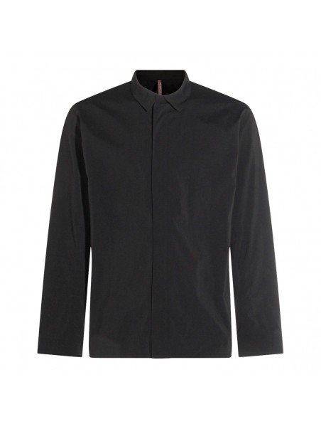 Black Metry LS shirt from Arc'Teryx Veilance featuring classic collar, long sleeves, frontal fastening and regular vestibility