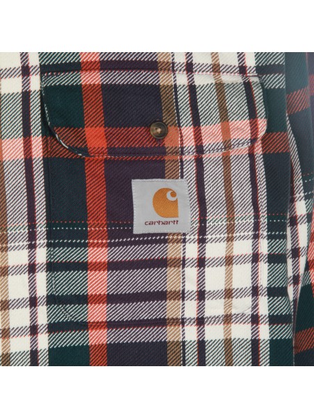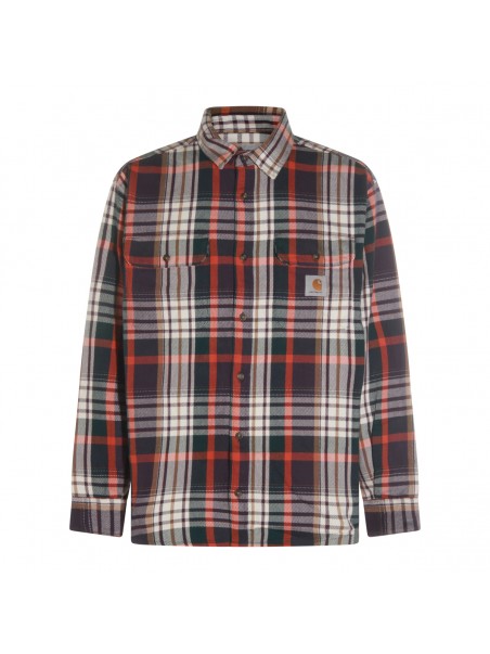 Red and multicolor cotton shirt from Carhartt Wip featuring long sleeves, shirt collar, buttons fastening and logo patch.