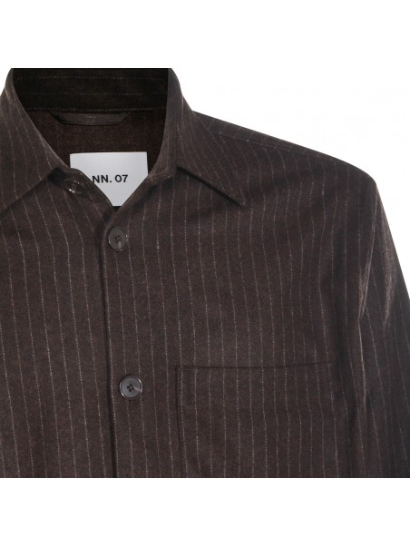 Brown wool shirt from NN.07 featuring shirt collar, long sleeves, striped motif, buttons fastening, chest pocket and regular vestibility.
