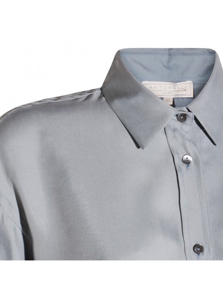 Light blue silk Quirino shirt from Antonelli Firenze featuring shirt collar, long sleeves, frontal buttons fastening and regular vestibility.
