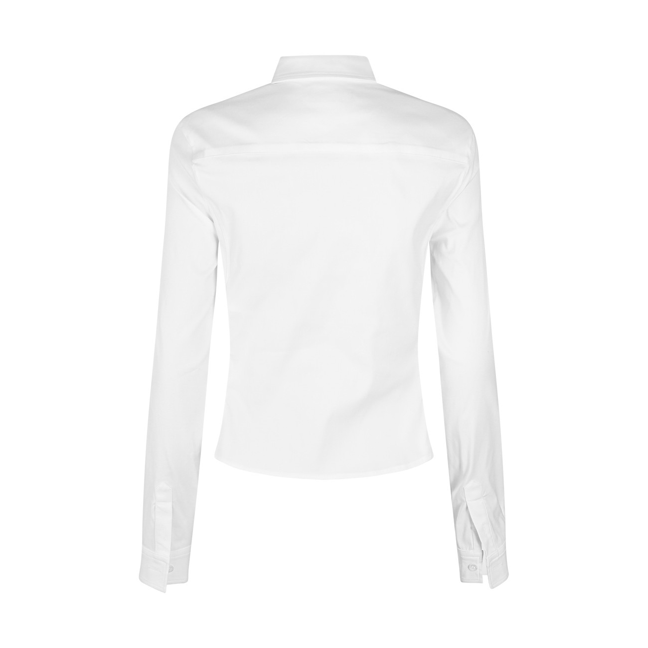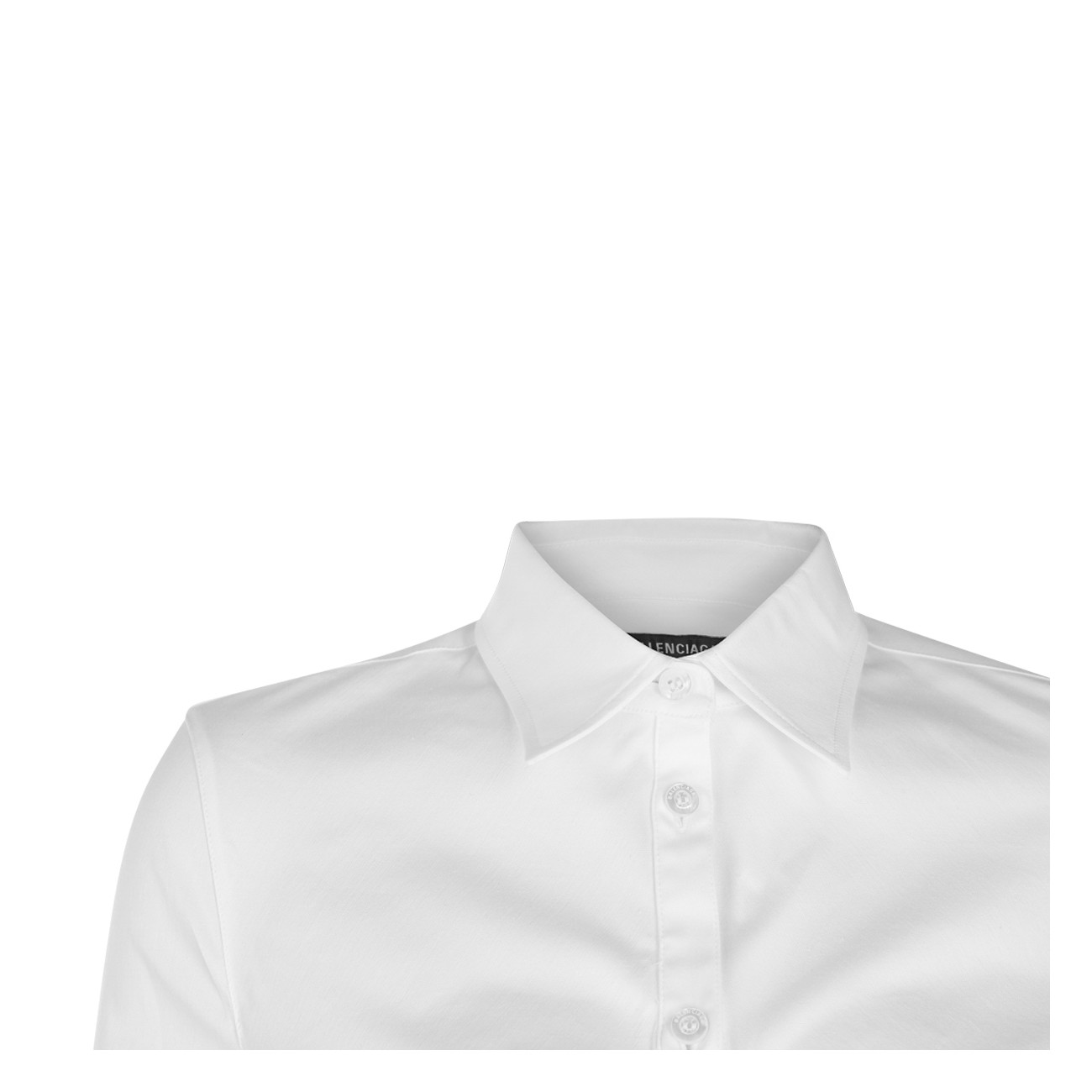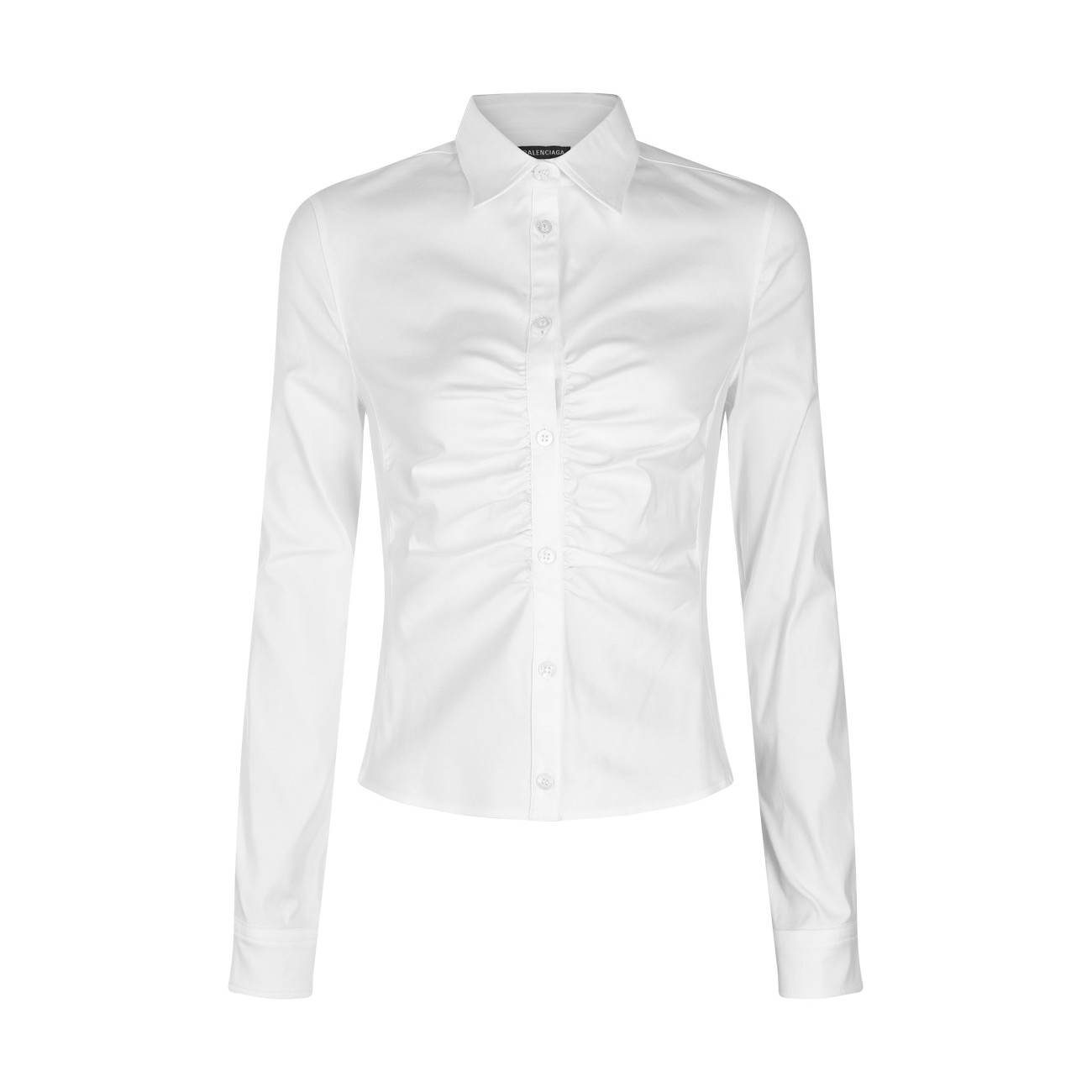White cotton shirt from Balenciaga featuring shirt collar, long sleeves, buttons fastening, frontal rouches detail and regular vestibility.