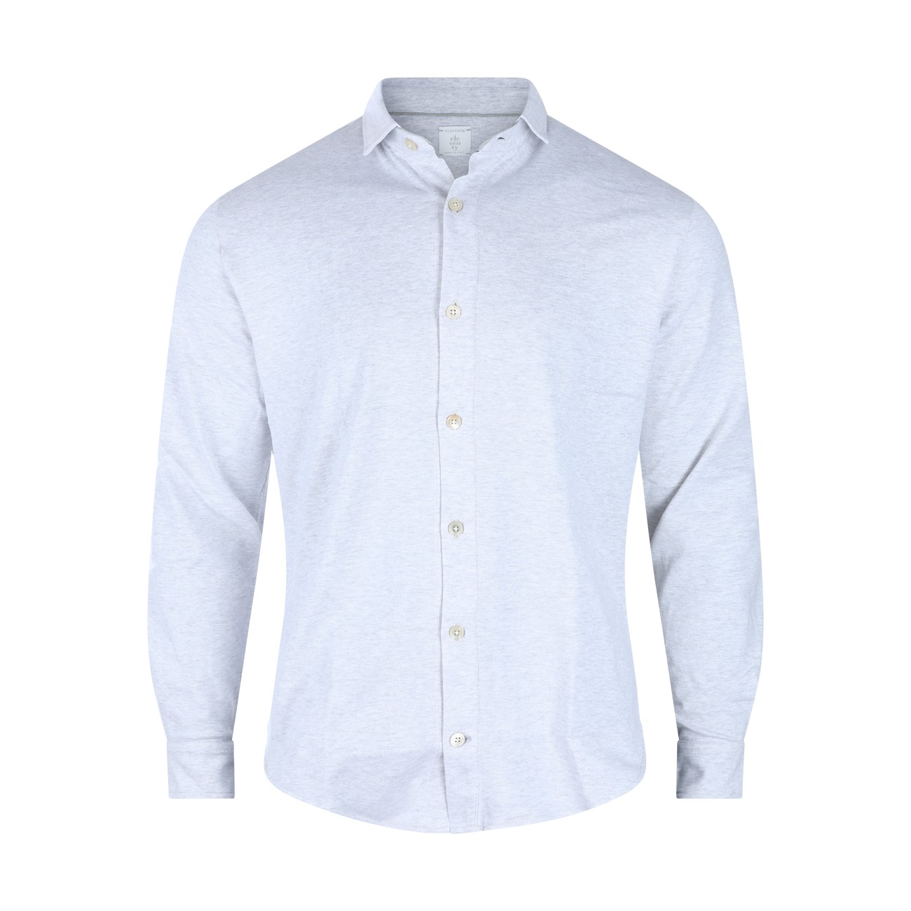 Light grey cotton shirt from Eleventy featuring classic shirt collar, long sleeves, buttons fastening and regular vestibility.