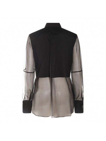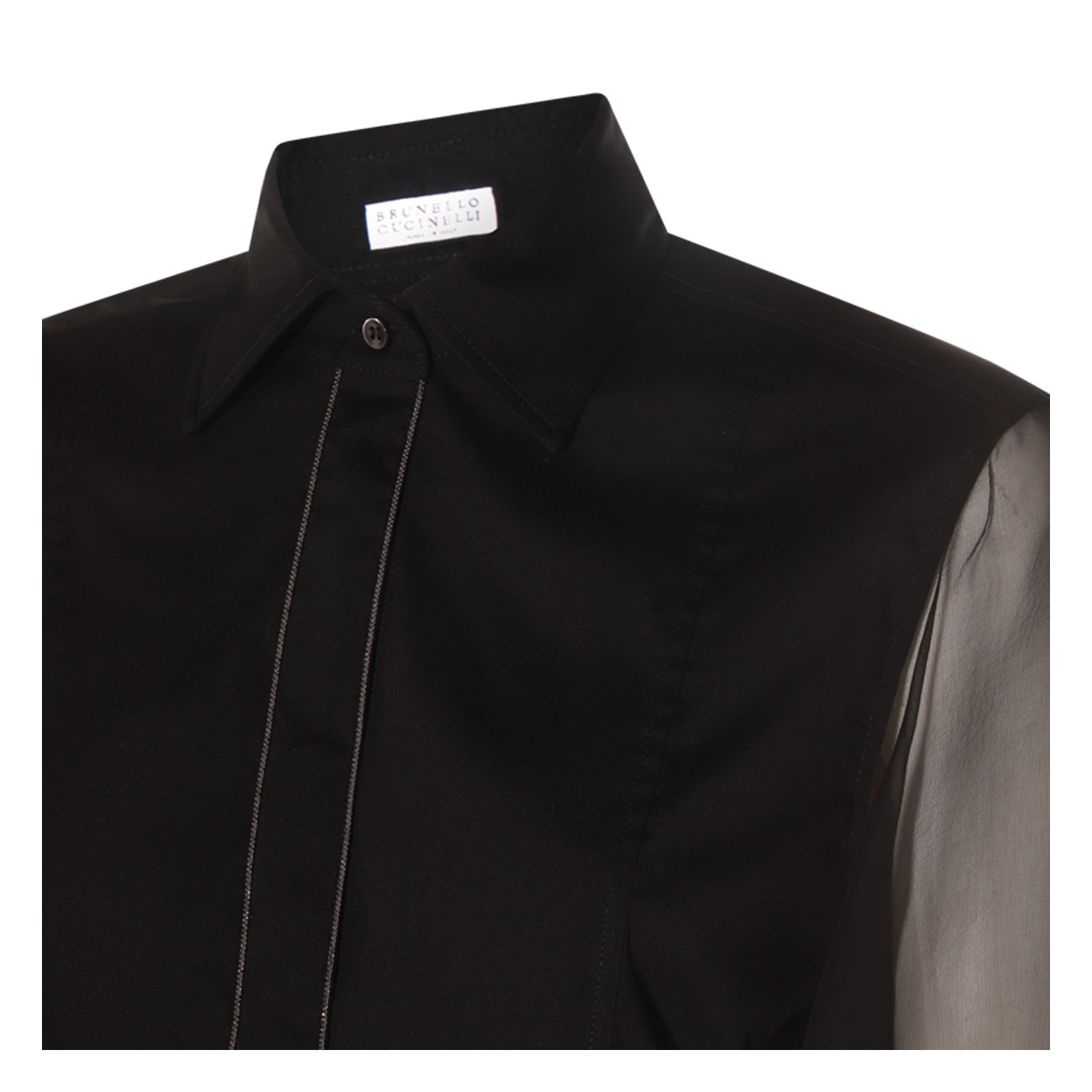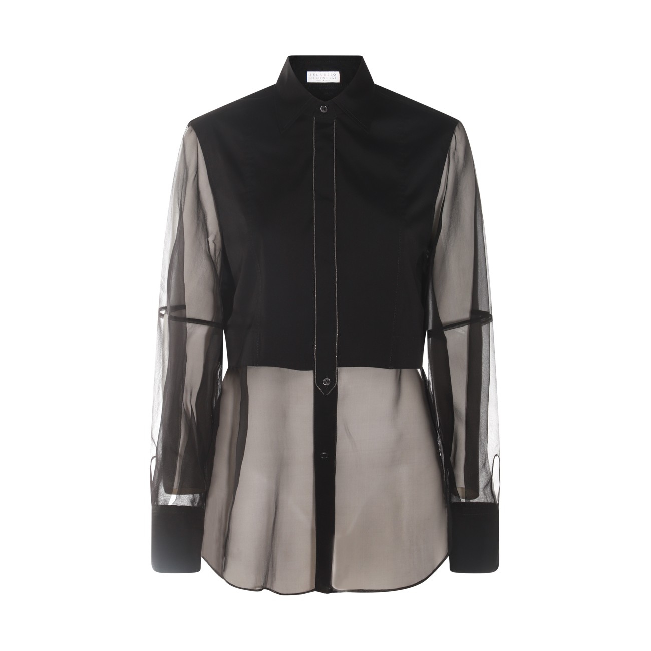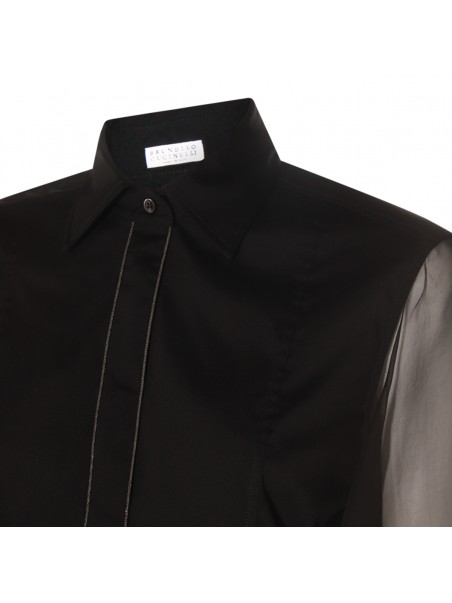 Black cotton shirt from Brunello Cucinelli featuring long sleeves, shirt collar, buttons fastening and trasparence.