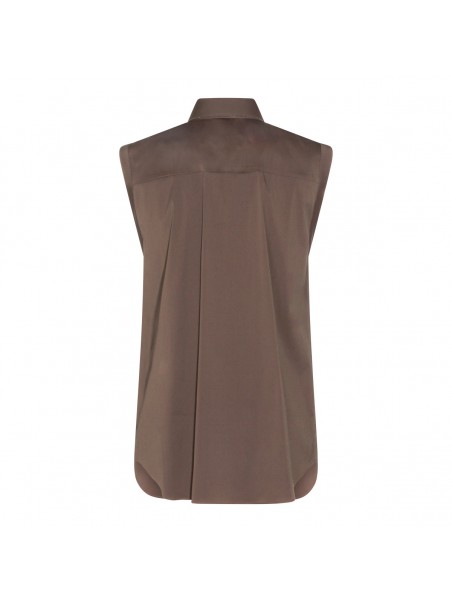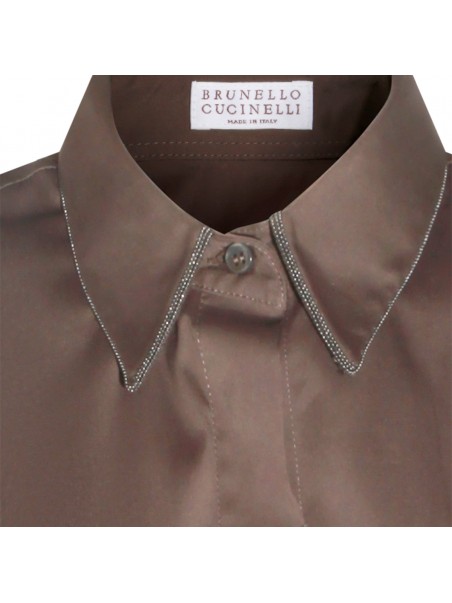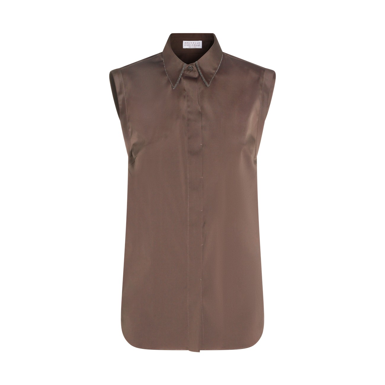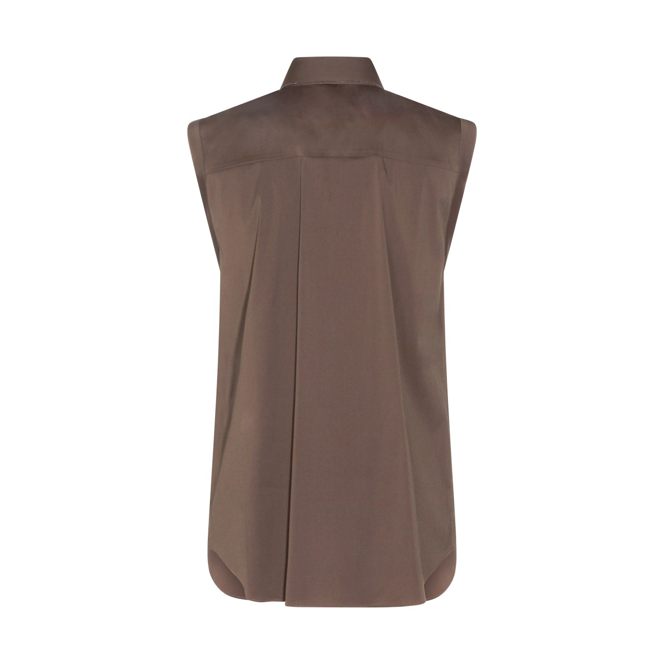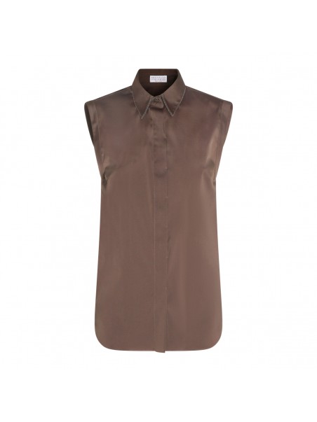 Brown cotton shirt from Brunello Cucinelli featuring classic shirt collar, sleeveless, frontal fastening and regular vestibility.