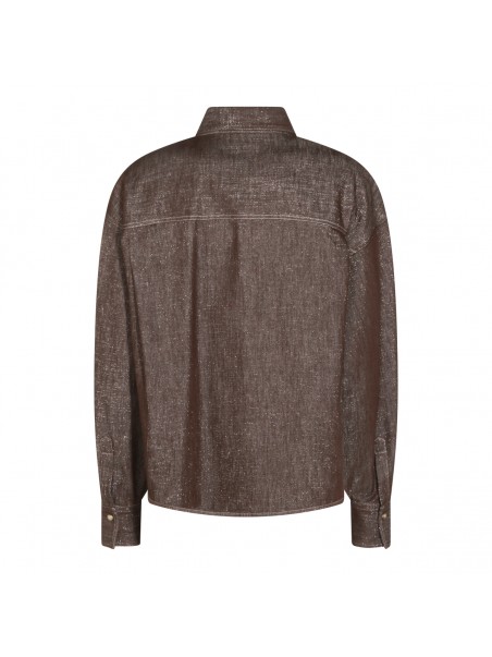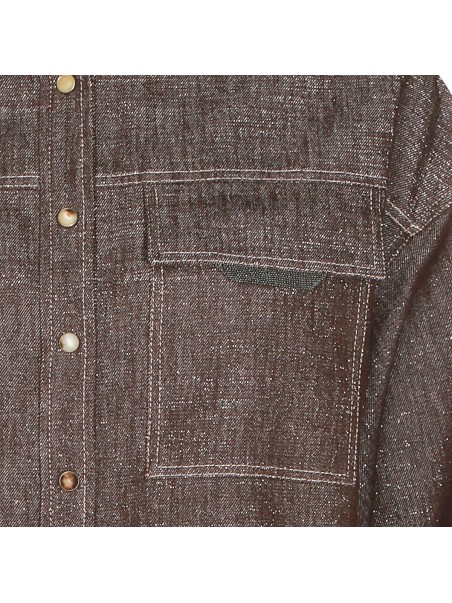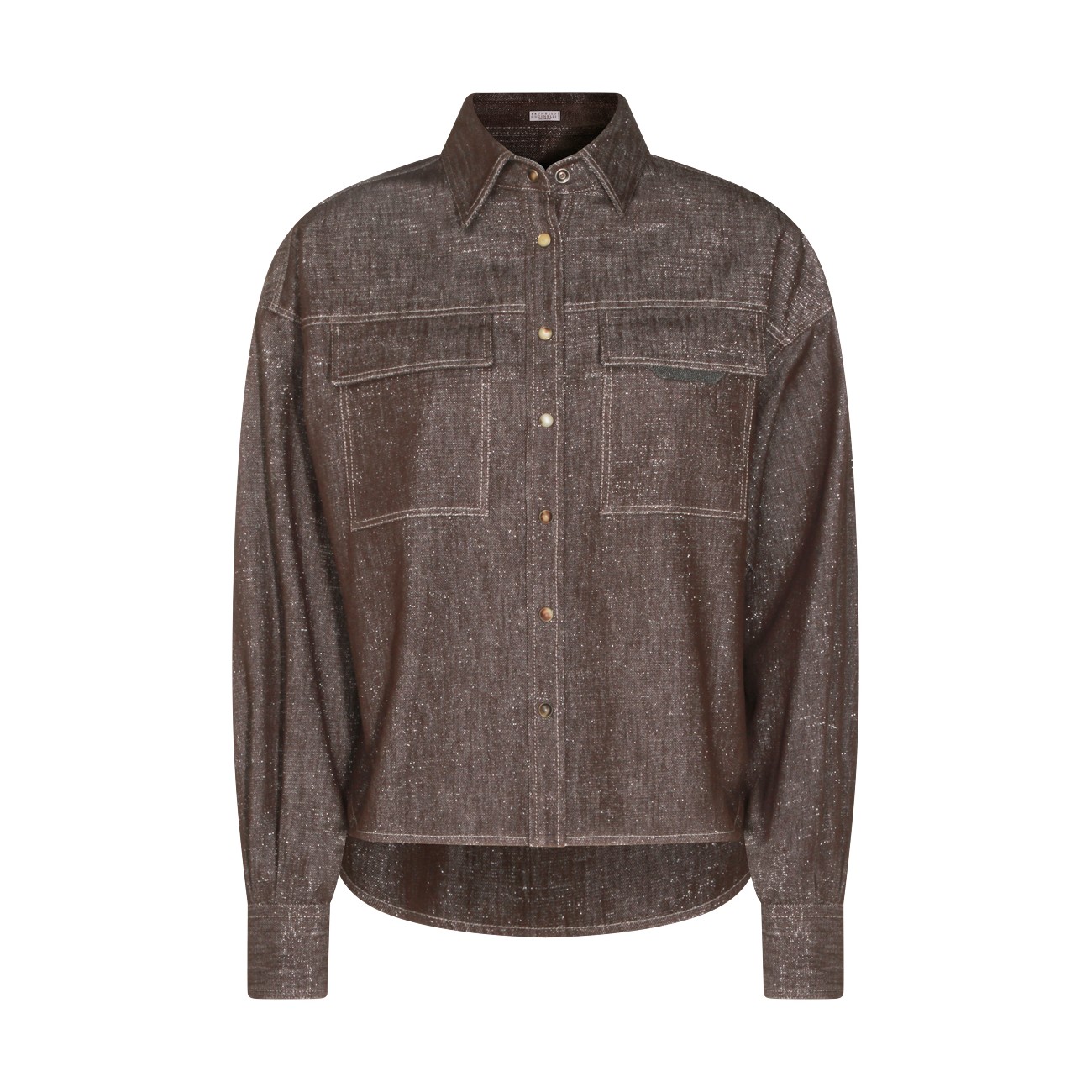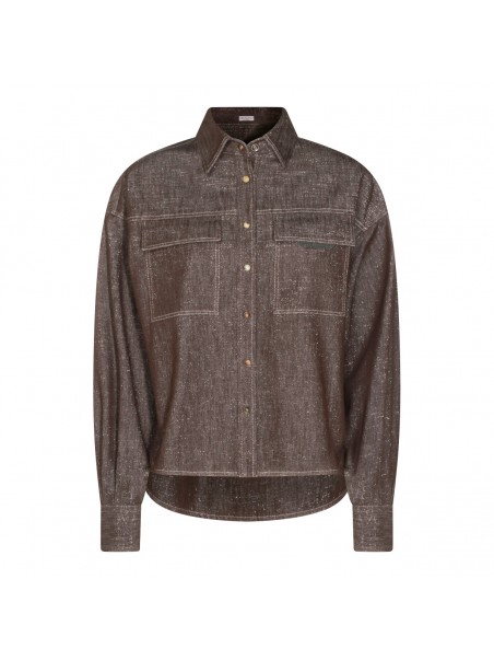 Dark grey cotton shirt from Brunello Cucinelli featuring classic shirt collar, long sleeves, chest pockets and regular vestibility.