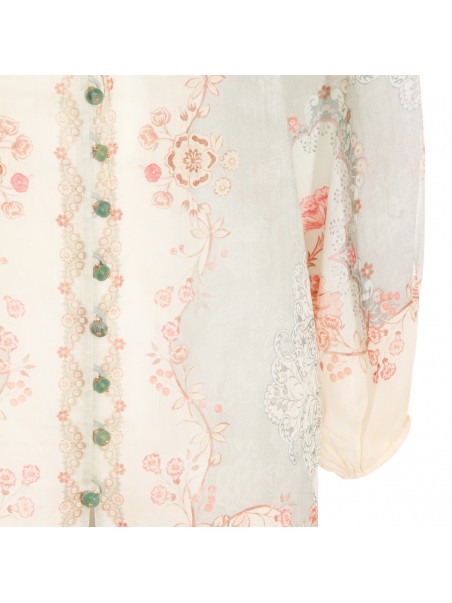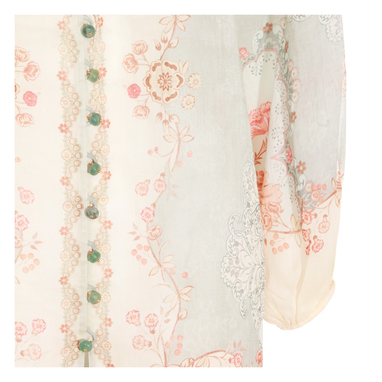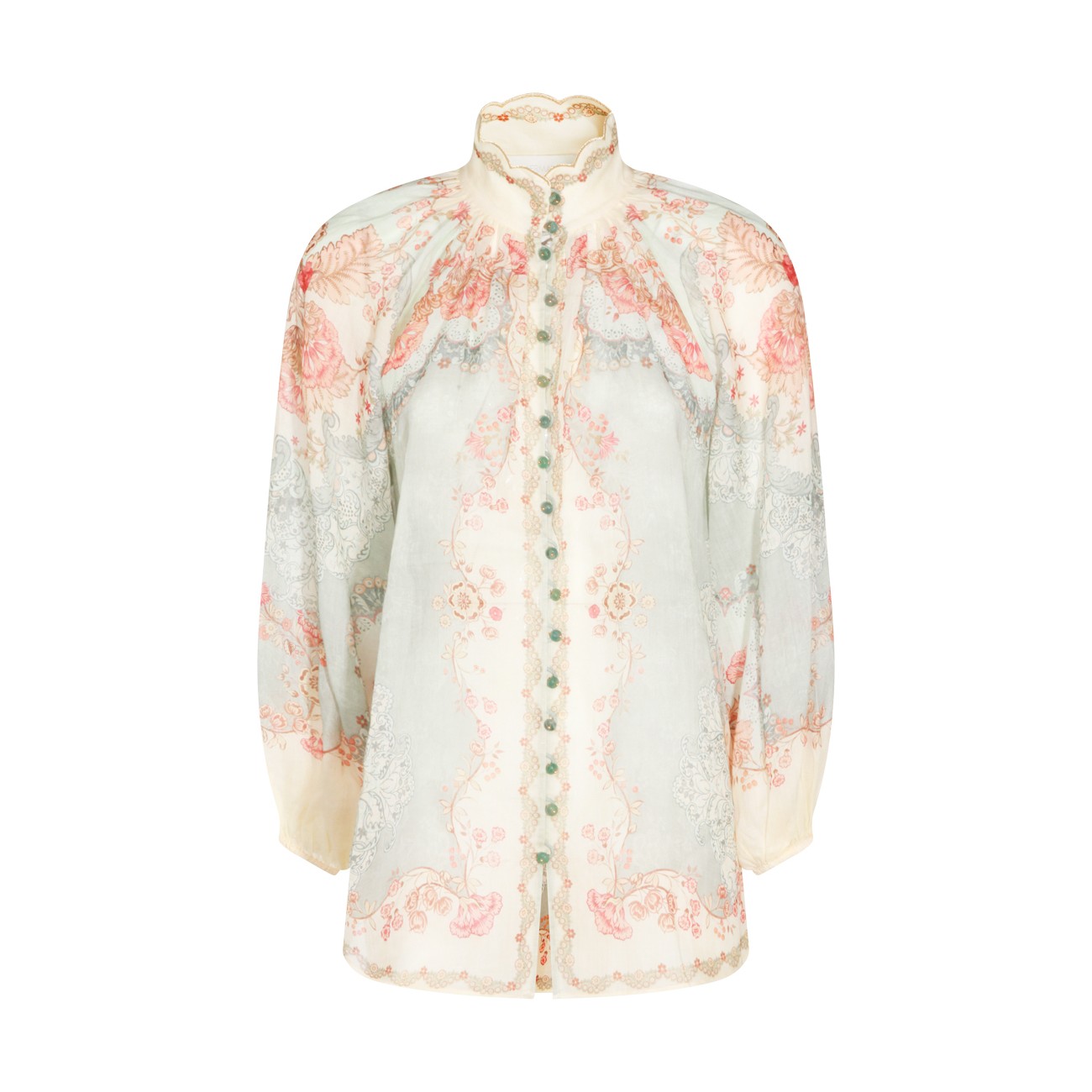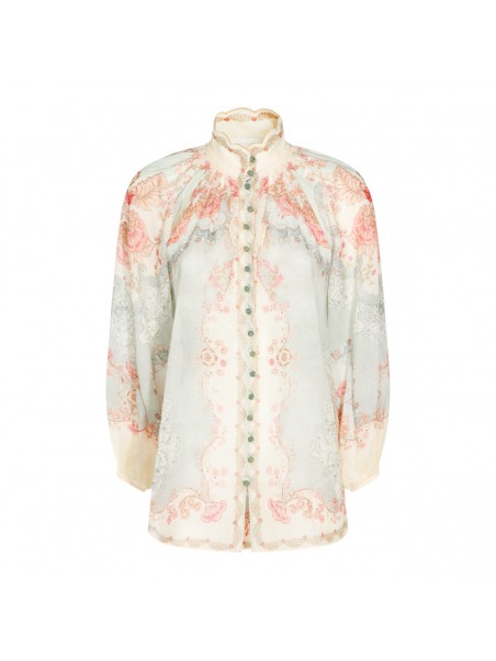 Floral ramishirt from Zimmermann featuring high collar, buttons fastening, long sleeves, and regular vestibility.