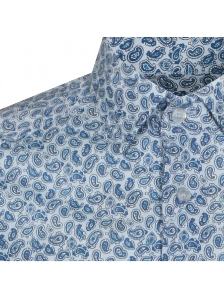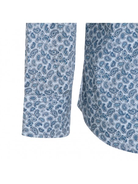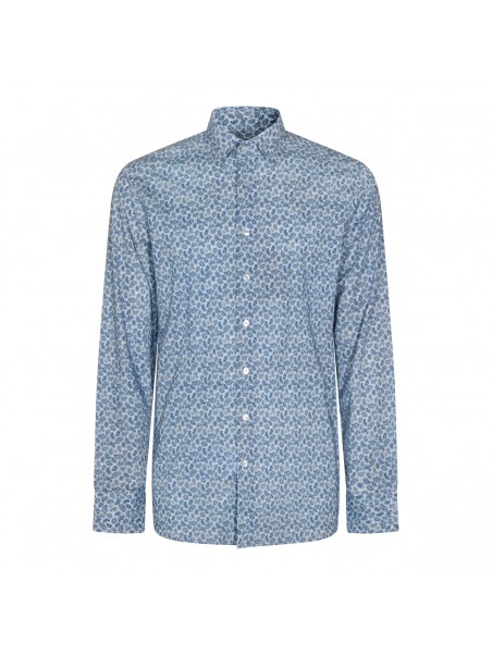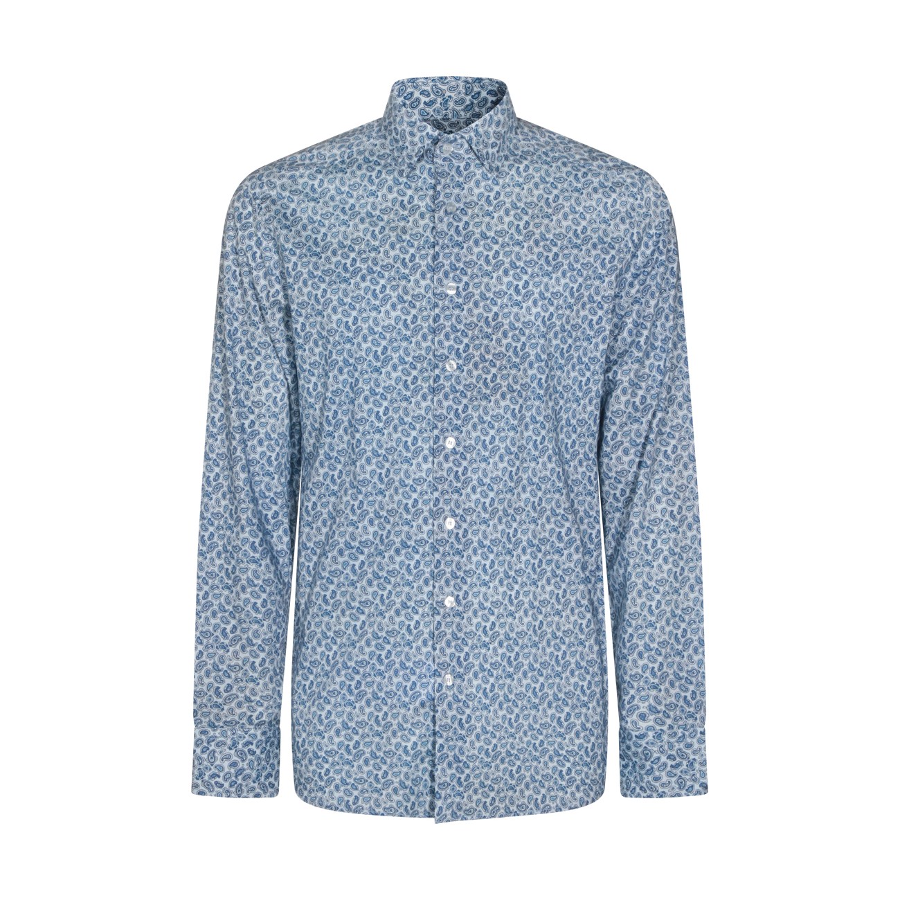 Blue cotton shirt from Etro featuring regular neck, buttons fastening, long sleeves, all over pattern and regular vestibility.
