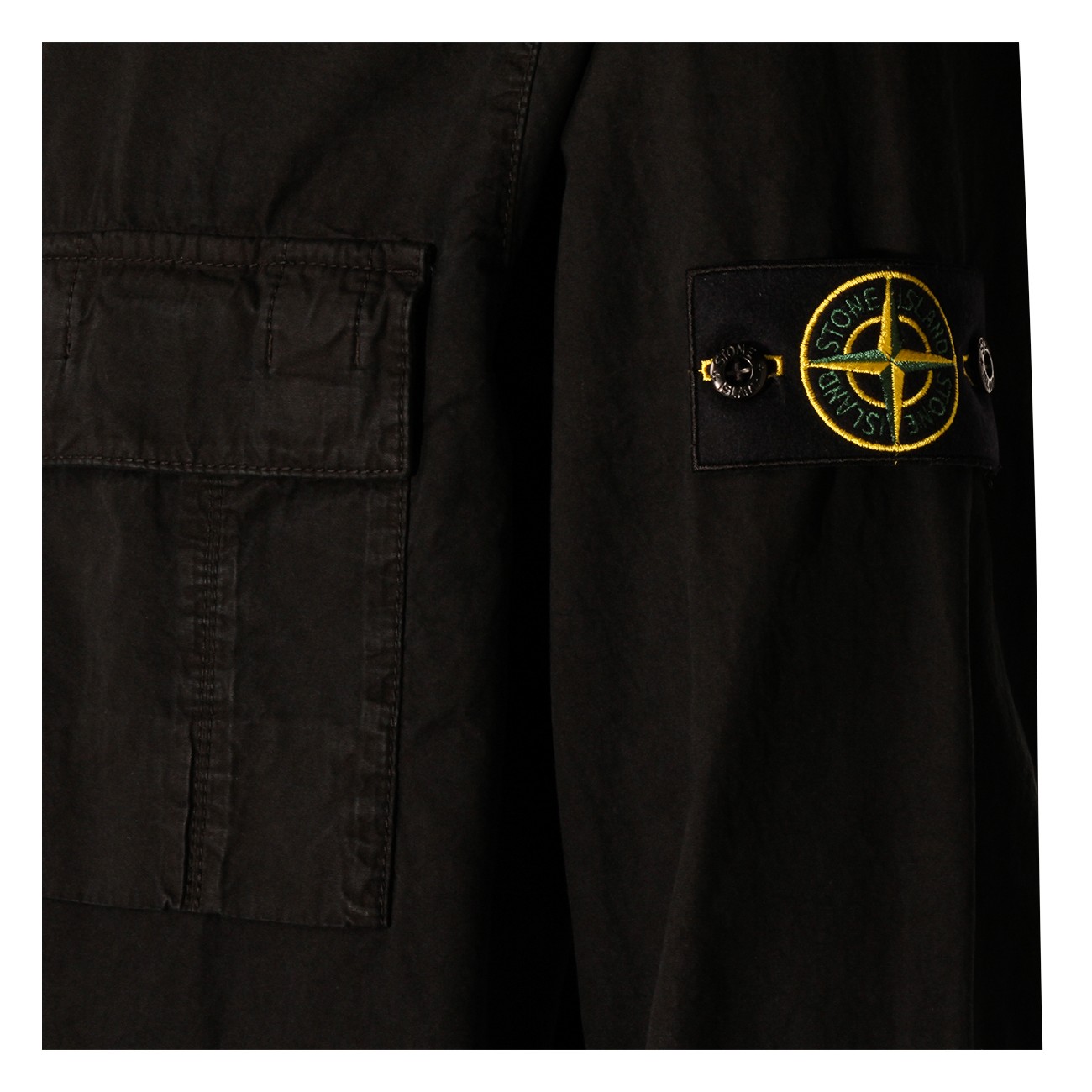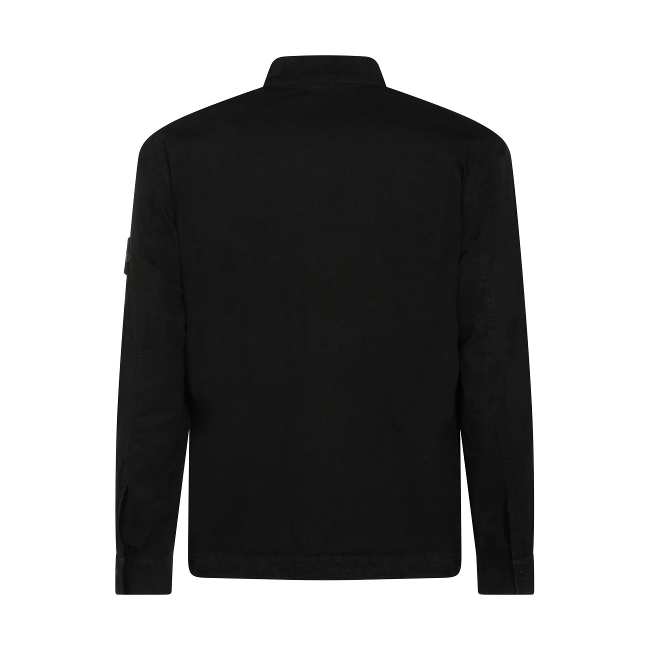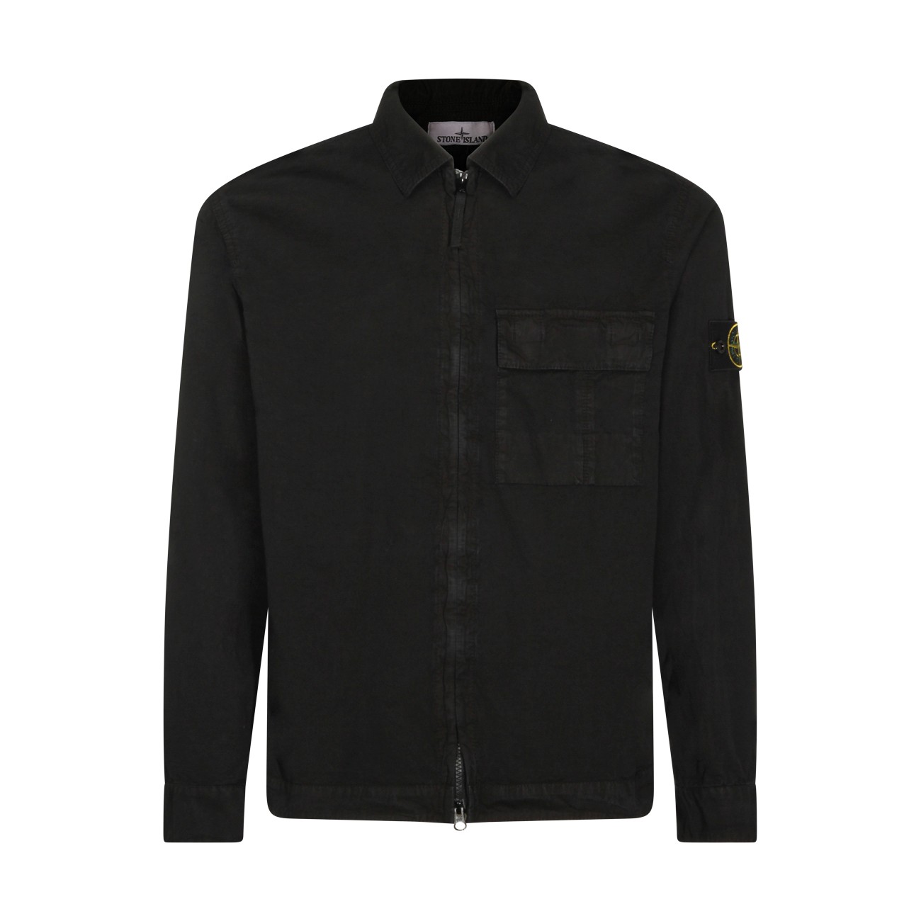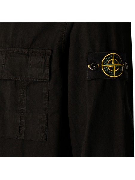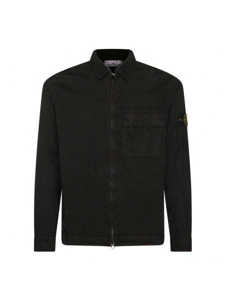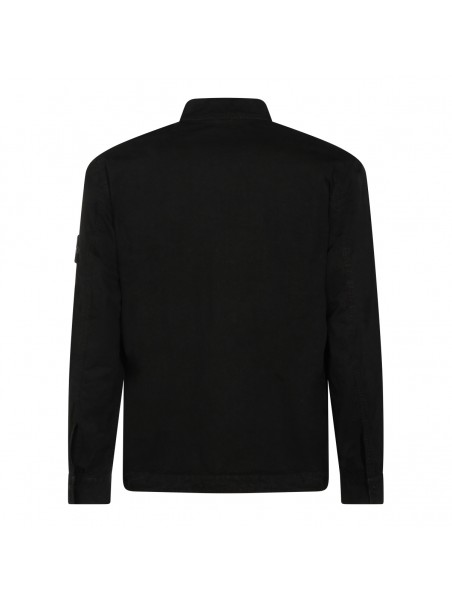 Black cotton shirt from Stone Island featuring shirt neck, zip fastening, long sleeves, frontal pocket, lateral removable logo and regular vestibility.