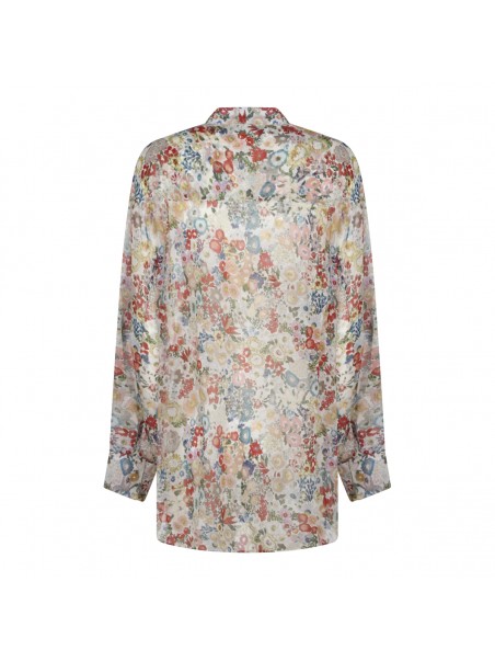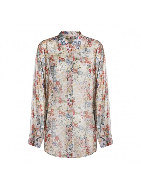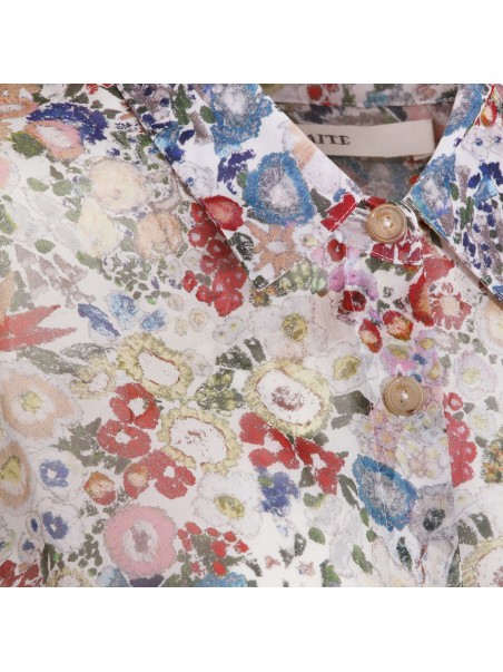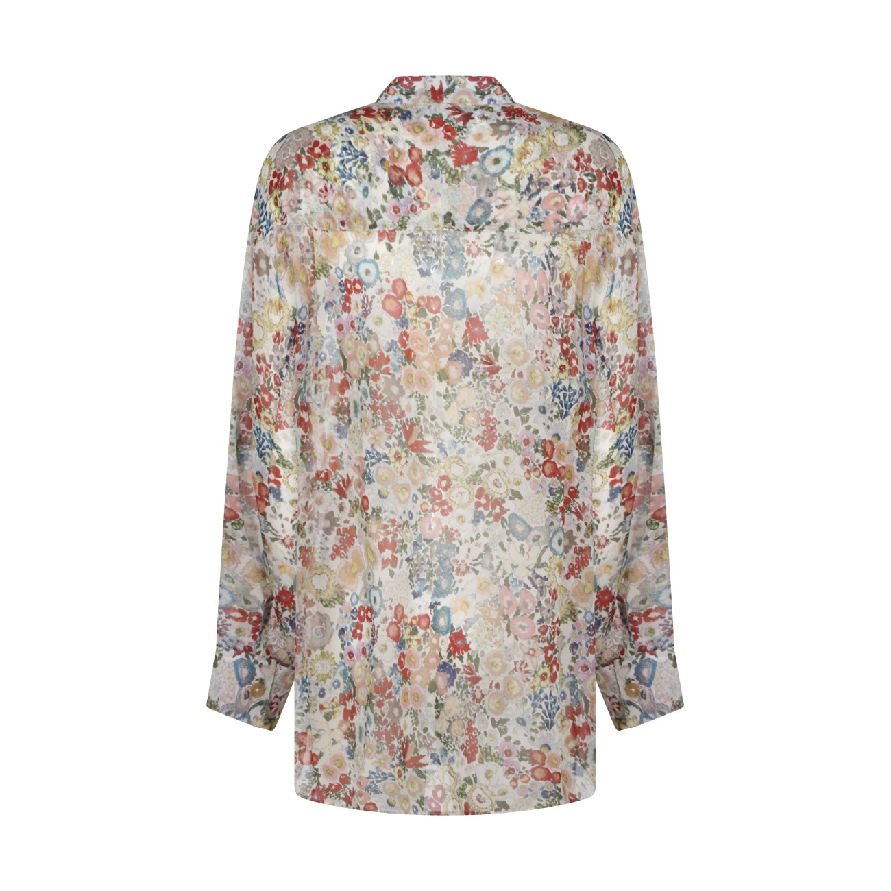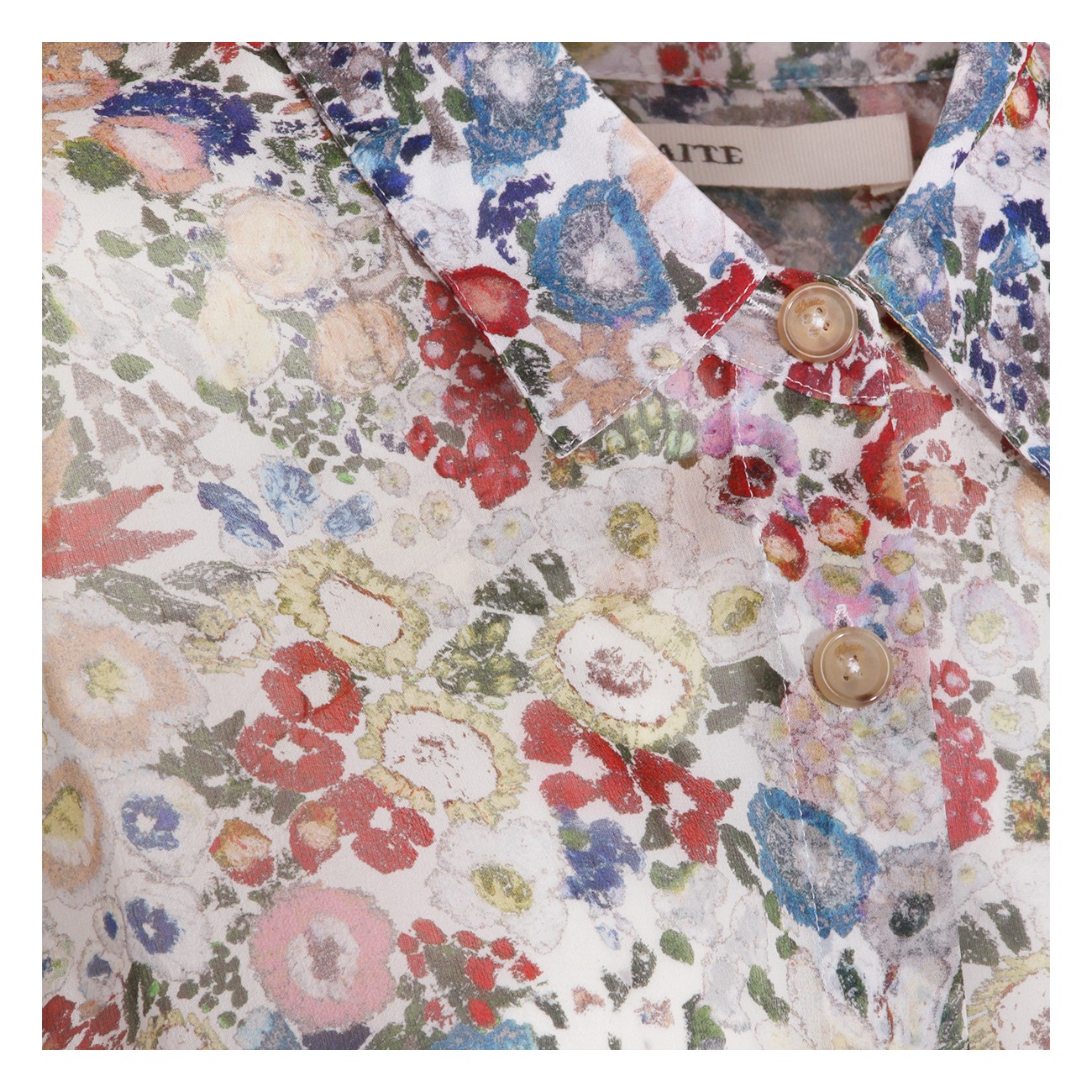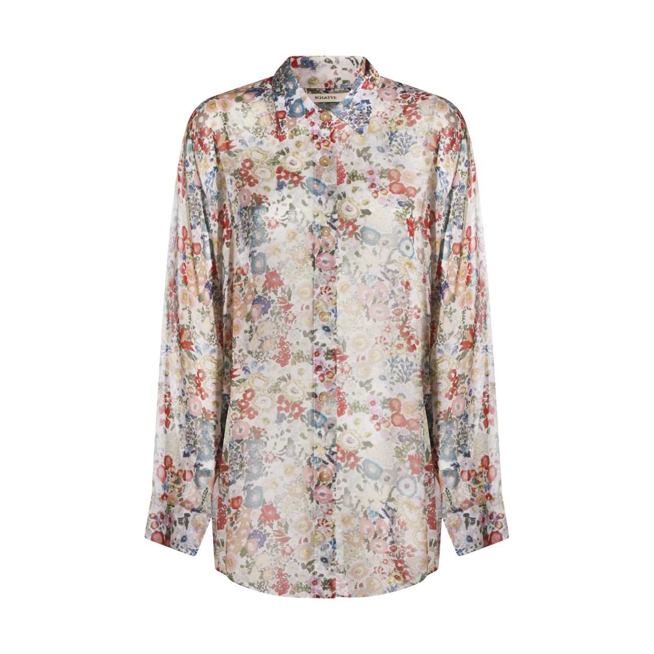 Multicolor silk shirt from Khaite featuring regular collar, buttons fastening, long sleeves, all over stamp and regular vestibility.