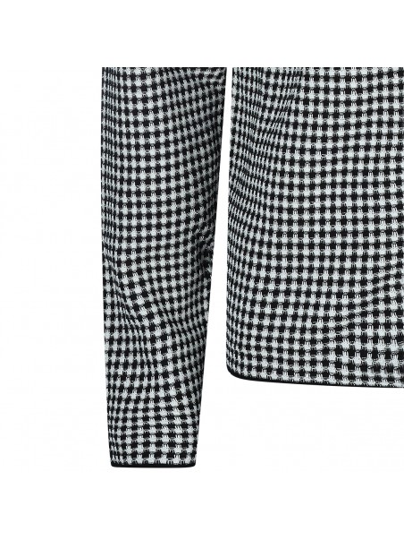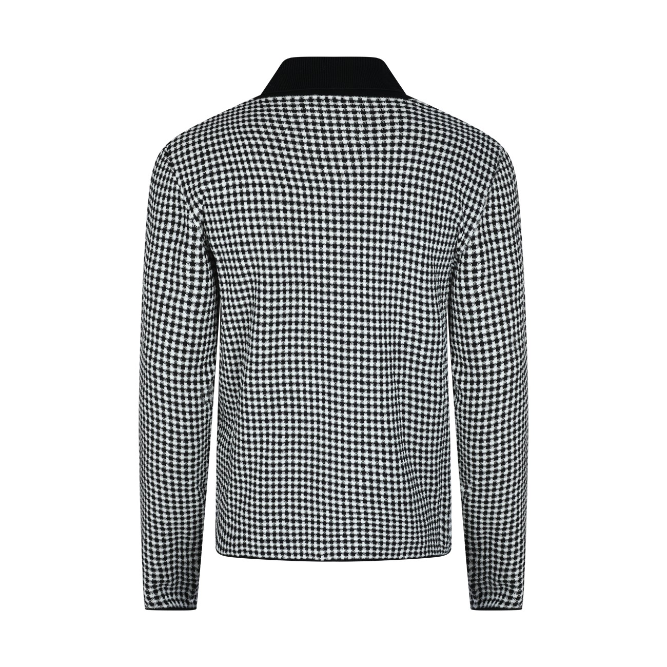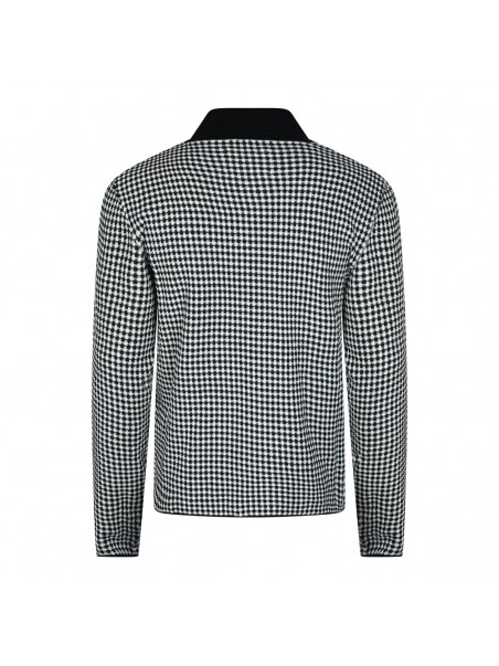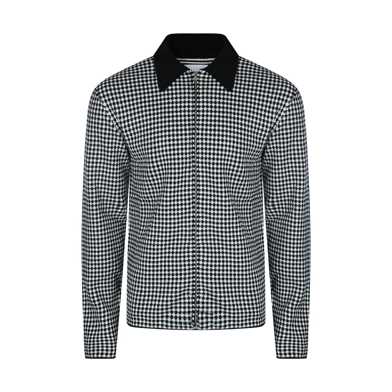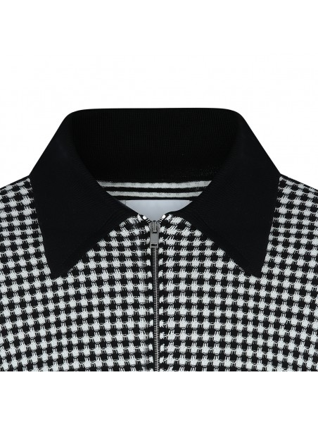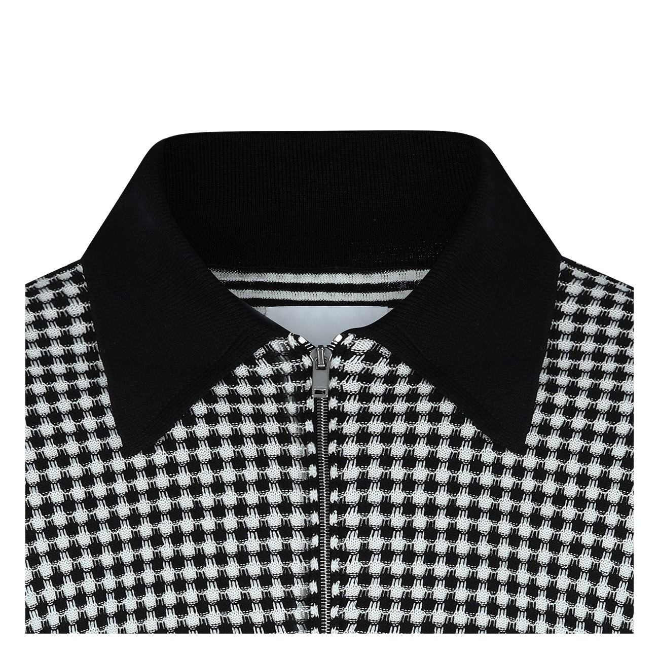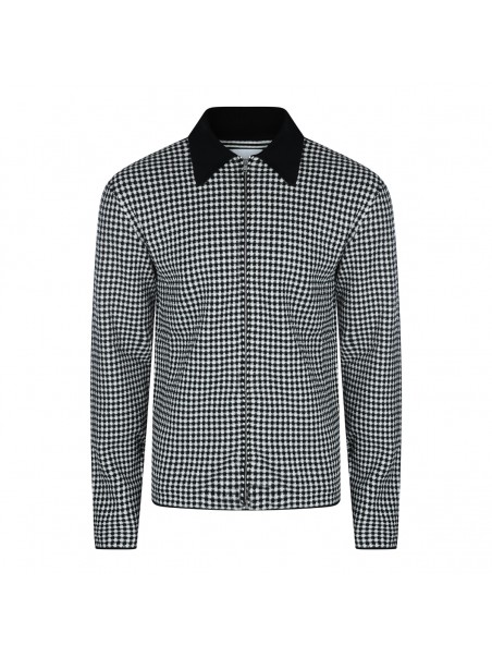 White and black cotton shirt from Jil Sander featuring contrasting collar, zip fastening, long sleeves, all over print and regular vestibility.