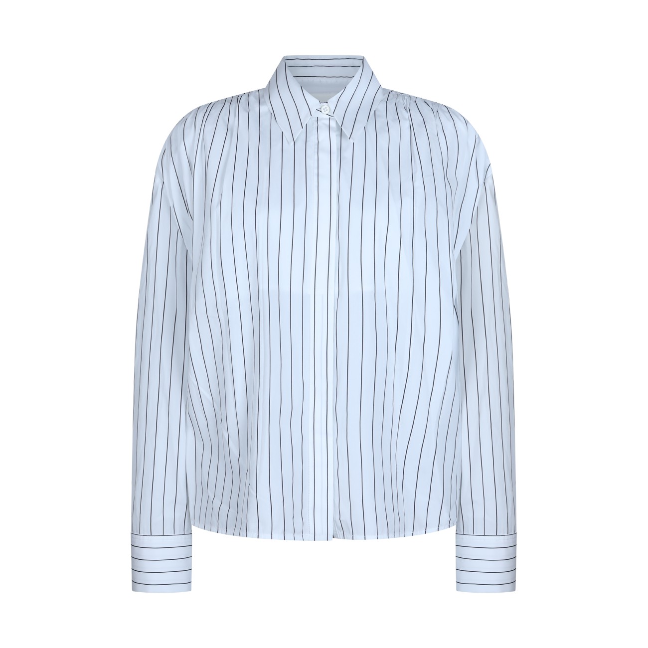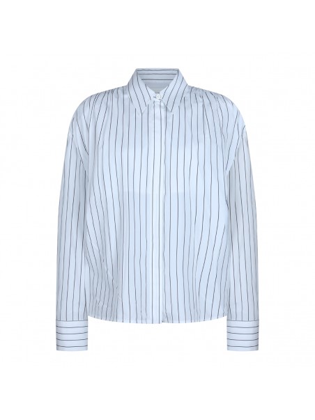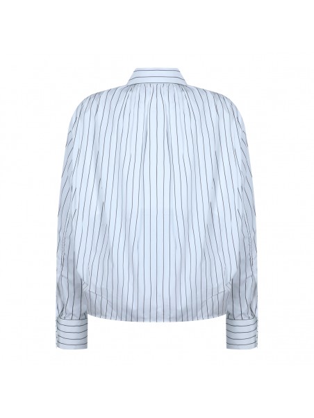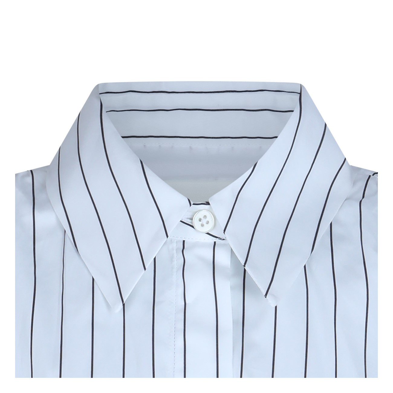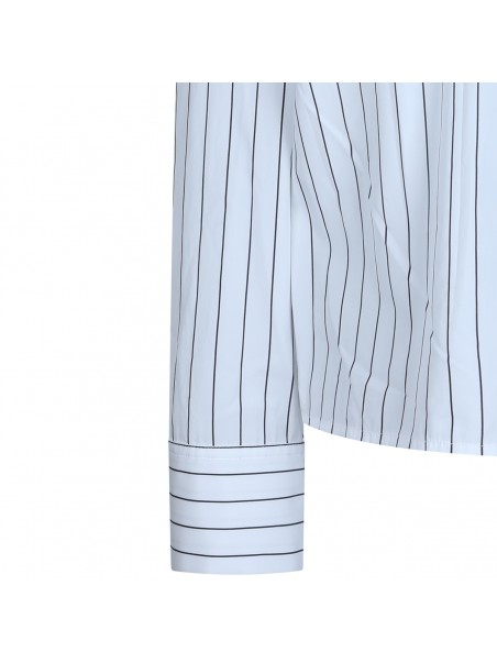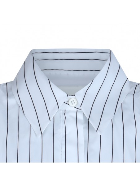 White and blue cotton shirts from Jil Sander featuring regular neck, buttons fastening, long sleeves, all over stripes and regular vestibility.