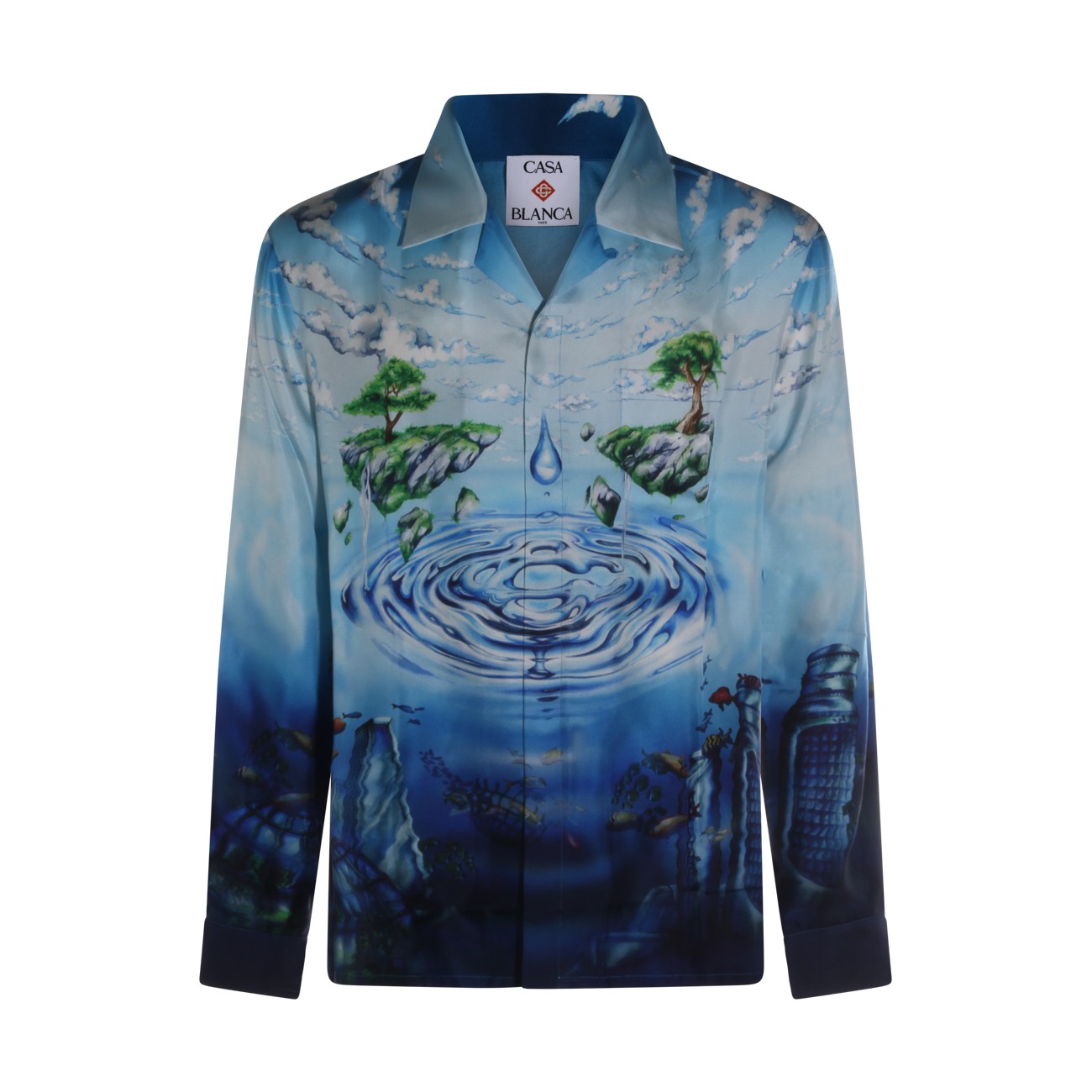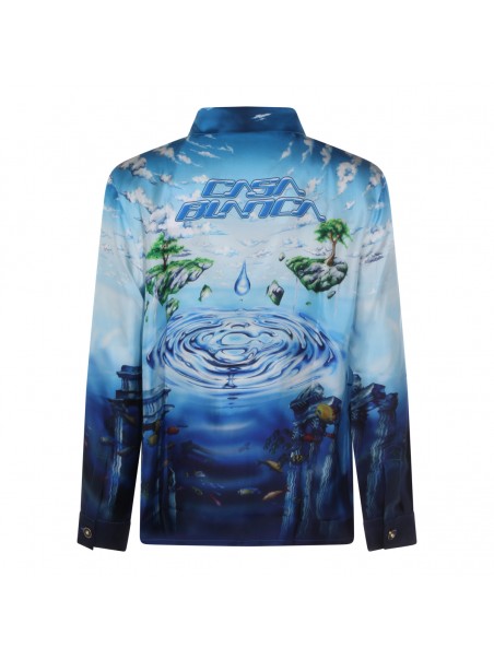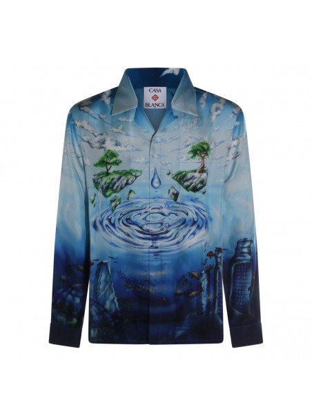 Multicolor silk shirt from Casablanca featuring regular neck, buttons fastening, long sleeves, all over stamp and regular vestibility.