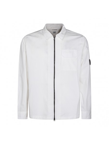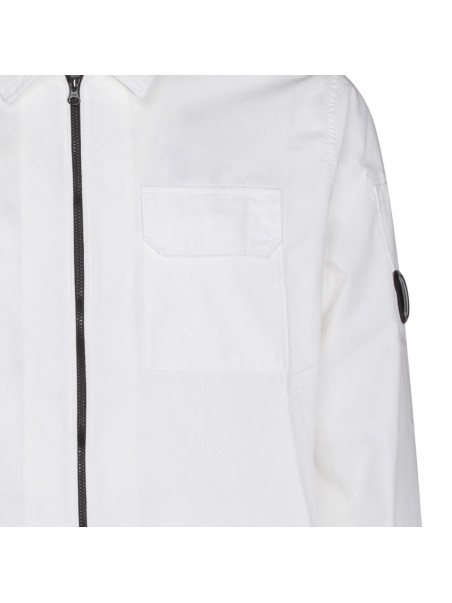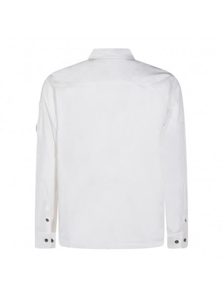 White cotton shirt from Cp Company featuring long sleeves, zip fastening, logo patch and regular vestibility.