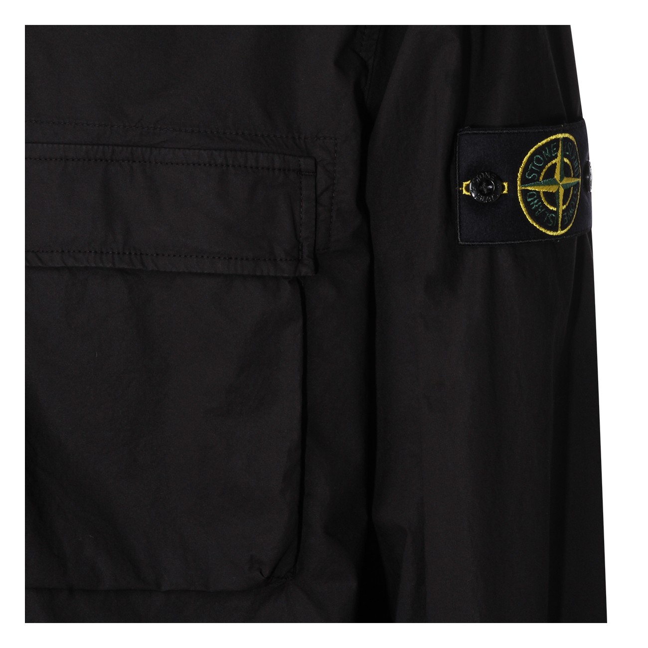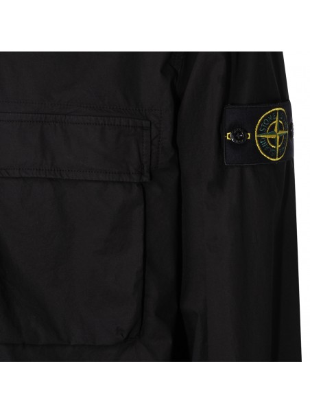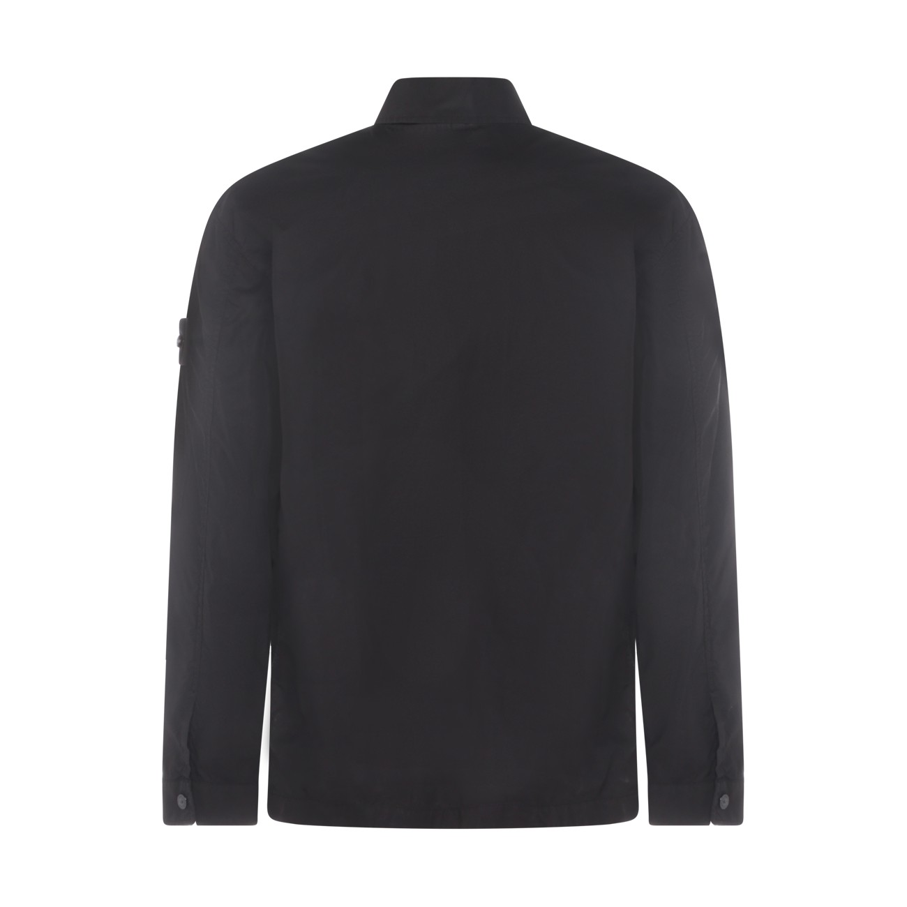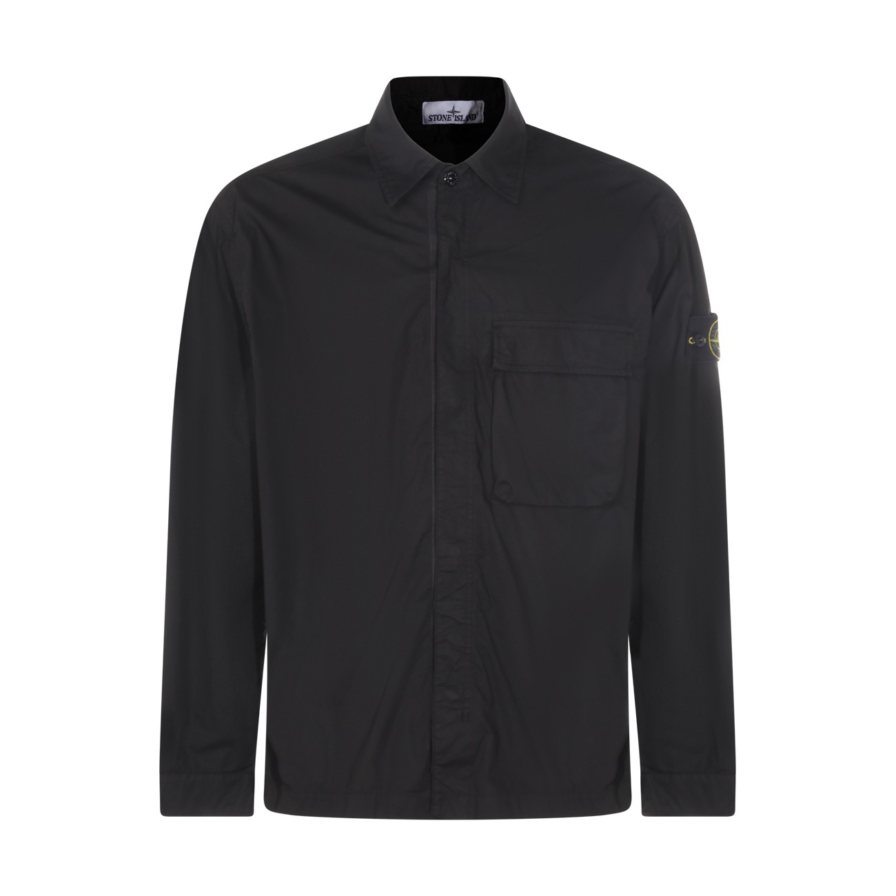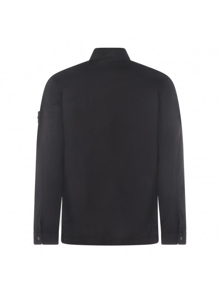 Black cotton shirt from Stone Island featuring long sleeves, logo patch, frontal zip fastening, shirt collar and regular vestibility.