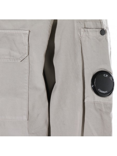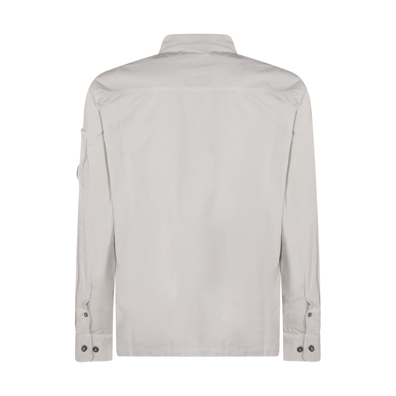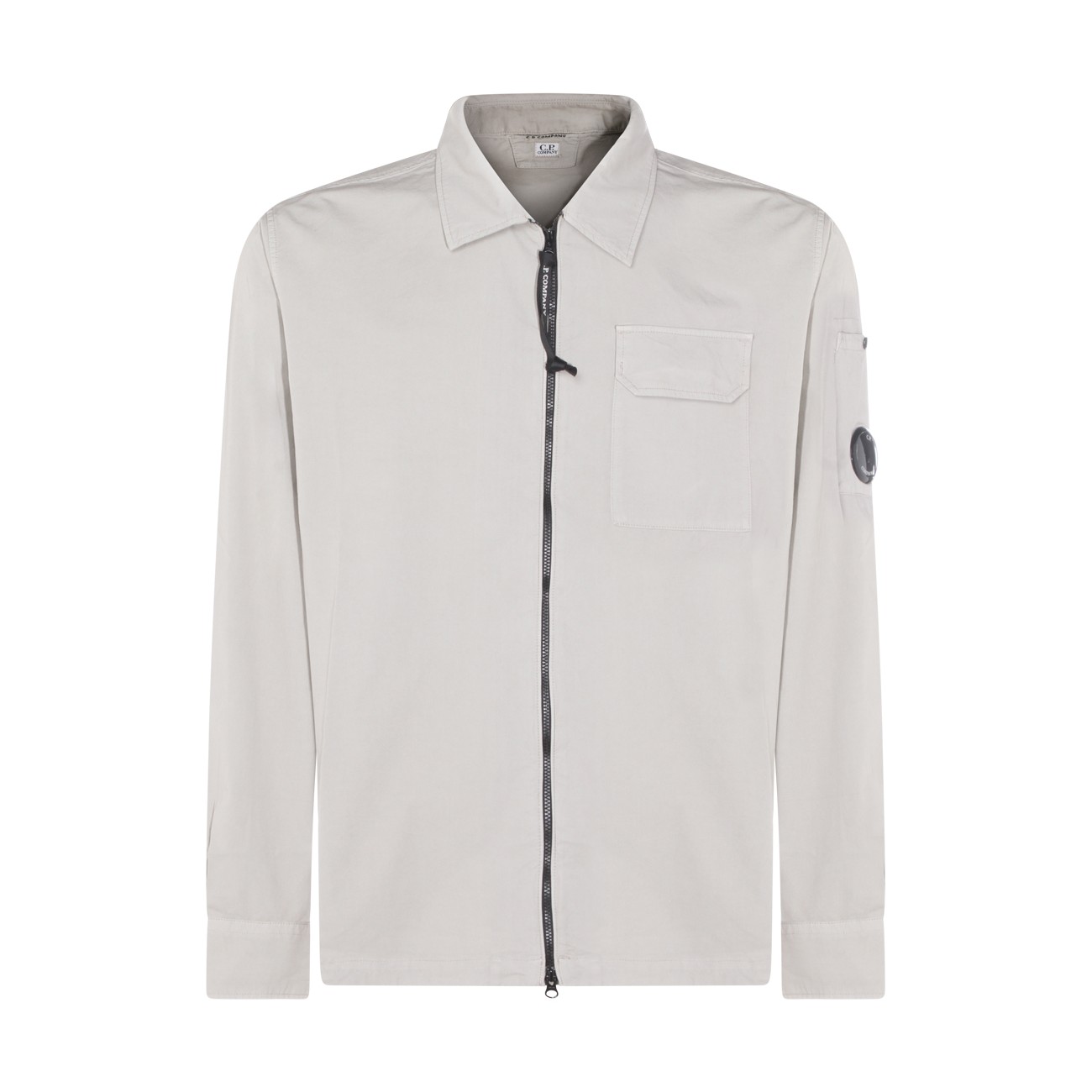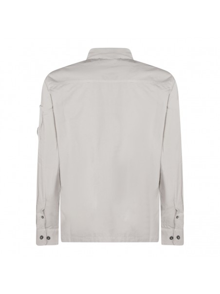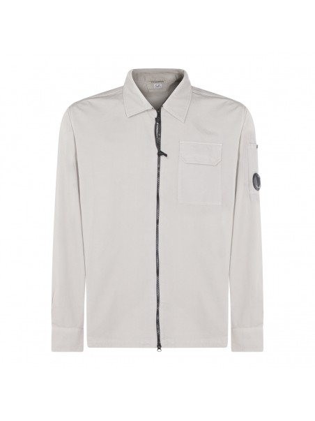 White cotton shirt from Cp Company featuring long sleeves, shirt collar, zip fastening, logo patch and pocket.