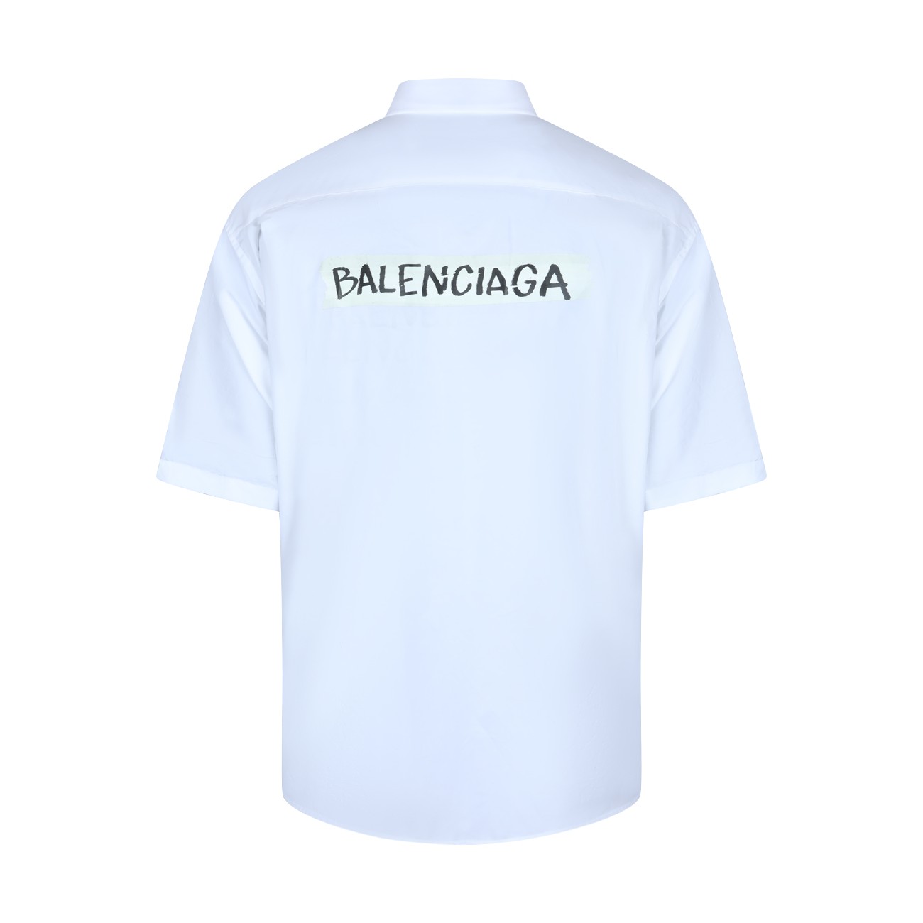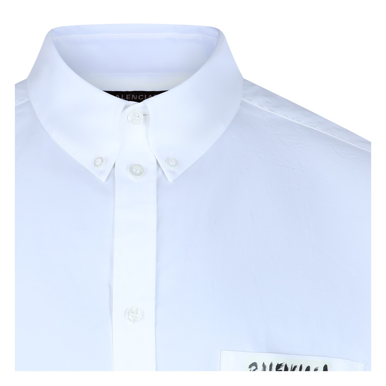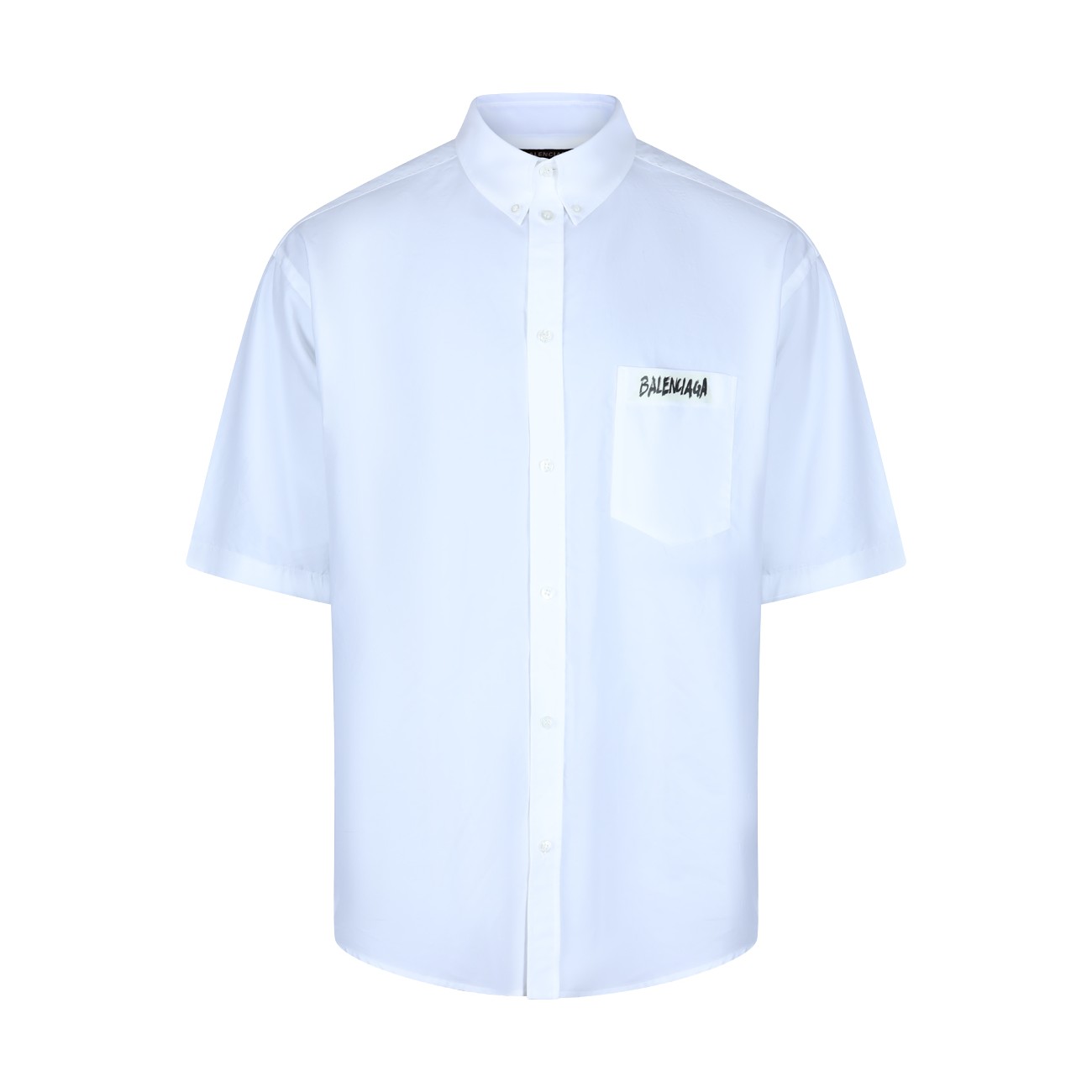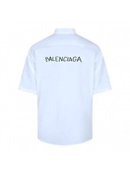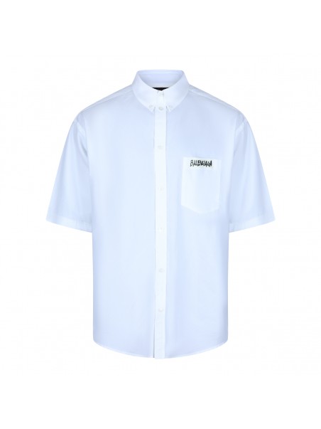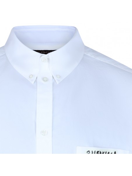 White cotton shirt from Balenciaga featuring short sleeves, high shirt collar, buttons fastening, pocket and logo.